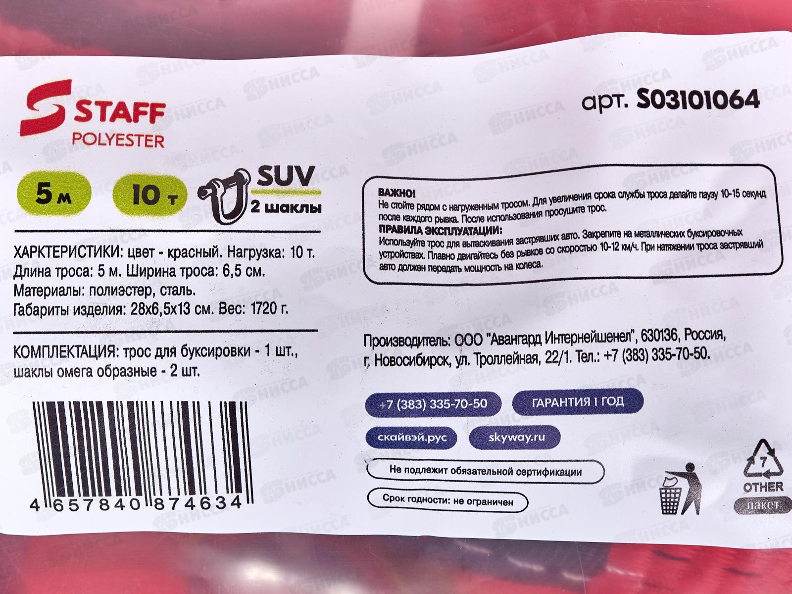Трос ленточный 10т 5м 2 шакла STAFF SKYWAY 65мм