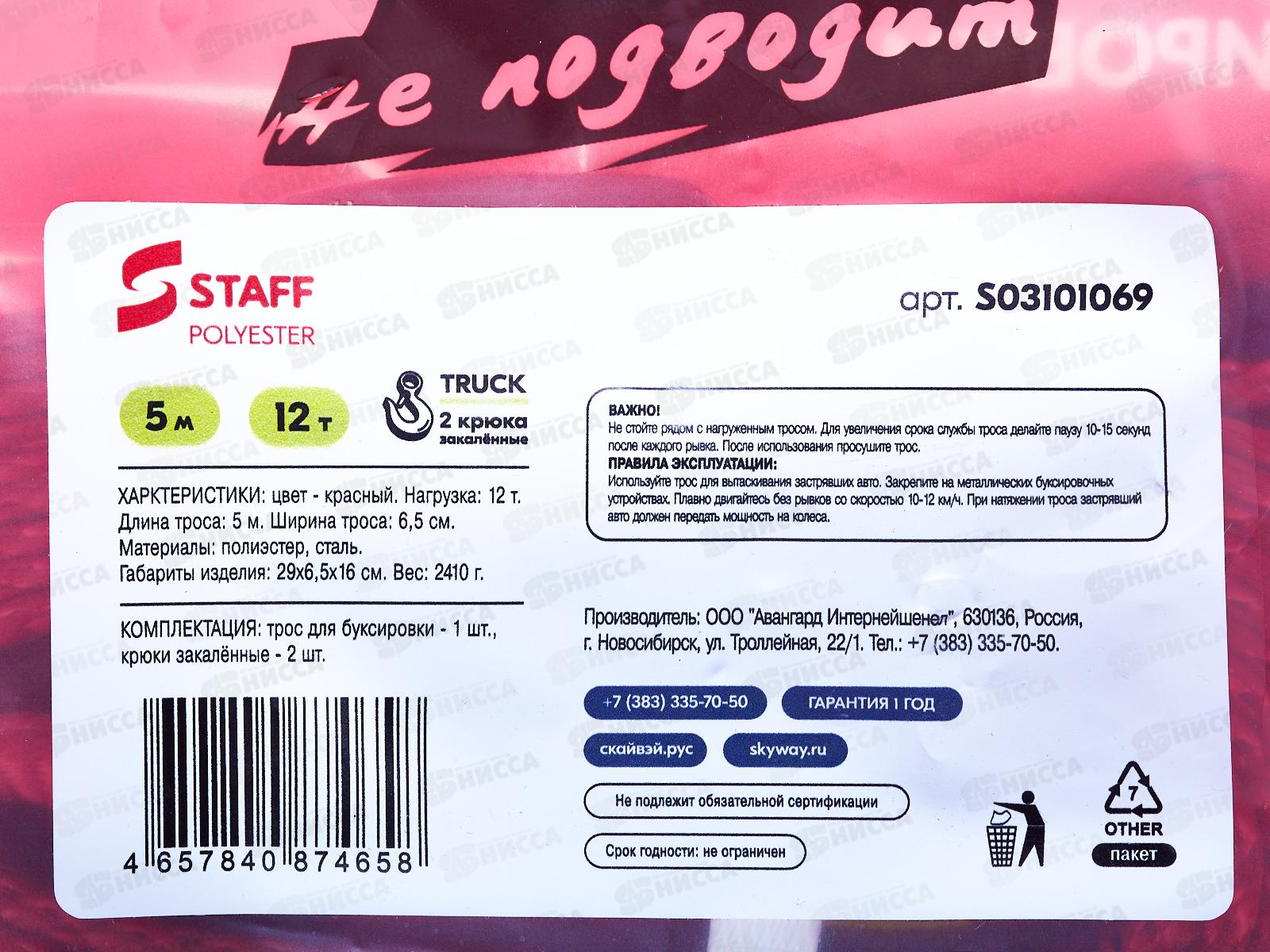 Трос ленточный 12т 5м 2 крюка STAFF SKYWAY 65мм