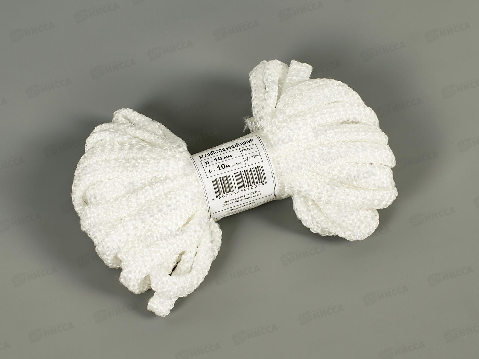 Шнур хозяйственный №10 предназначен для различных бытовых и хозяйственных целей. Бытовой шнур обладает высокой прочностью, устойчив к действию щелочей, растворителей и кислот, не впитывает влагу. Длина шнура - 10 м.