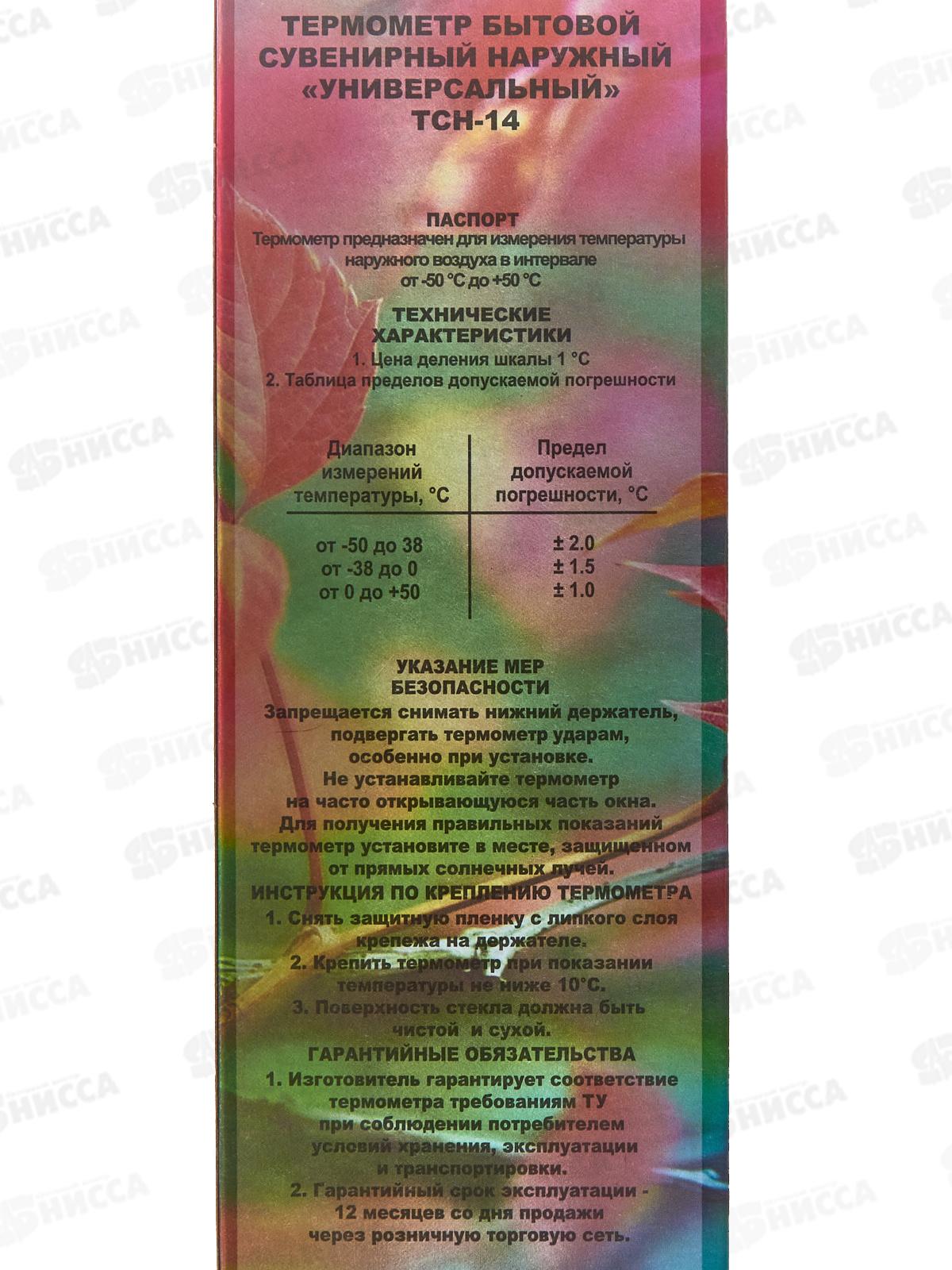Термометр уличный Липучка ТСН-14, картонная упаковка *40