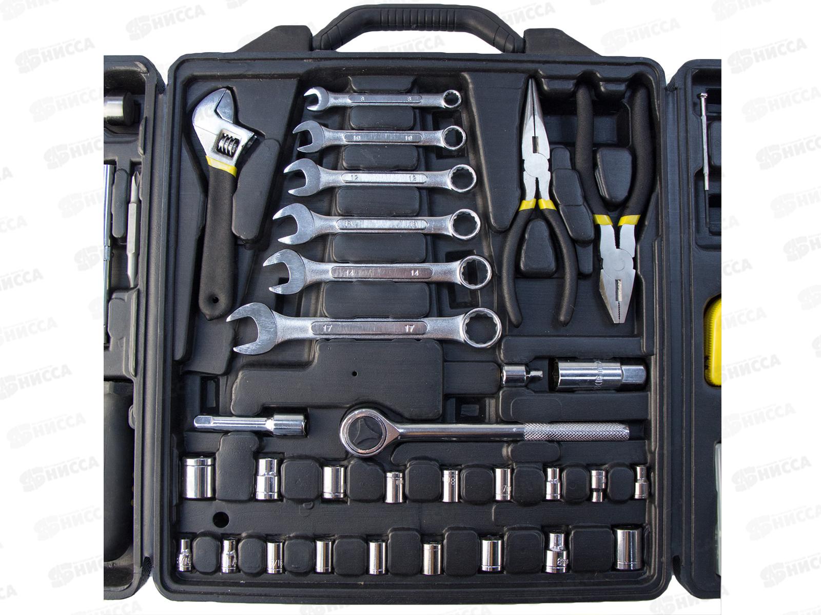 Набор Kolner "KTS" содержит 59 предментов необходимых для выполнения любых слесарных работ. Инструменты изготовлены из высококачественной хромованадиевой стали и закалены, благодаря чему имеют большой срок эксплуатации. Рукоятки инструментов обеспечивают комфорт во время работы, не утомляют и не натирают руку. Универсальный набор инструментов поставляется в кейсе, который удобно взять с собой или хранить в кладовке. В комплектацию входят шестигранный ключ - 1,5/2/2,5/3/4/5/5,5/6 мм (8 шт), шестигранный ключ - 1/16" 5/64" 3/32" 1/8" 5/32" 13/64" 7/32" 15/64" (8 шт), изолента, двухсторонние биты- 2 шт, комбинированный гаечный ключ - 6 шт: 8/10/12/13/14/17 мм, тонкогубцы, рукоятка для бит, переходник с 3/8" на 1/4", удлинитель х3 для торцевой головки квадрат 3/8", свечная торцевая головка 3/8"- 16 мм, отвертка: 2 шт, торцевые головки квадрат - 3/8"-13,14 мм; 9/16" 1/2 (4 шт), молоток-гвоздодер, рукоятка с трещеткой квадрат 3/8", канцелярский нож, комбинированные пассатижи, часовая отвертка- 4 шт, рулетка- 3 м, торцевые головки квадрат - 1/4", 3/16"-5, 6 мм; 1/4"-8, 7 мм; 9/32", 5/16", 1/32"-9 мм; 3/8"-10,11 мм; 7/16" (14 шт), футляр с крепежом.