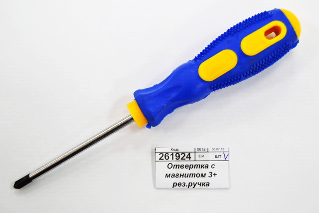 Отвертка с магнитом 3+ резиновая ручка (002977) *12 Ж