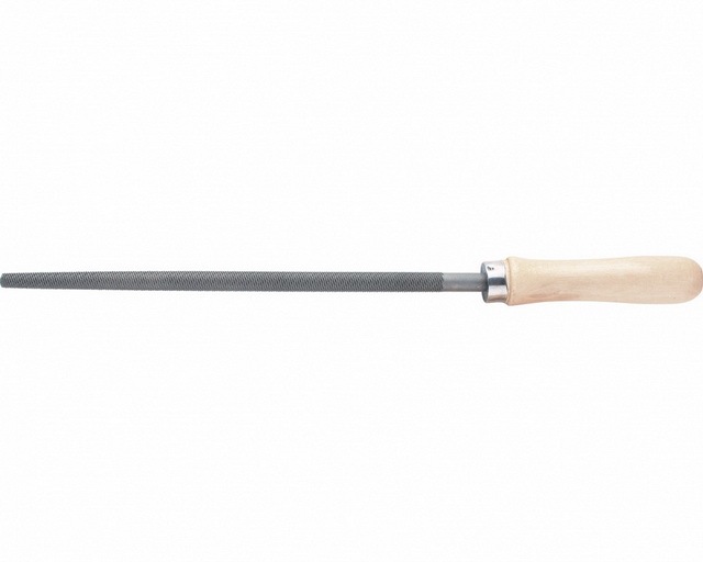 Напильник предназначен для качественной обработки круглых отверстий твердых материалов. Инструмент имеет двойную перекрестную насечку №2. Площадь сечения напильника уменьшается от середины к носу. Напильник изготовлен из углеродистой стали. Поставляется в комплекте с деревянной рукояткой, которая покрыта бесцветным лаком, защищающим древесину от рассыхания и набухания. Напильник (150 мм) предназначен для качественной обработки круглых отверстий особо твердых материалов. Напильник изготовлен из углеродистой стали и имеет специальное карбидное напыление