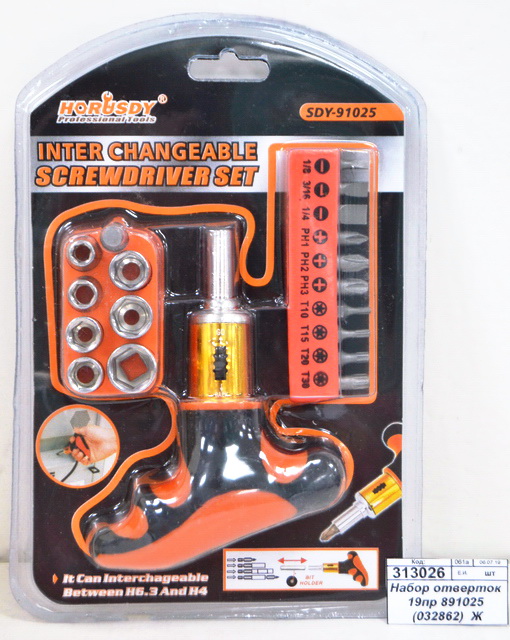 Набор отверток для монтажных и демонтажных работ. Набор включает 19 предметов.