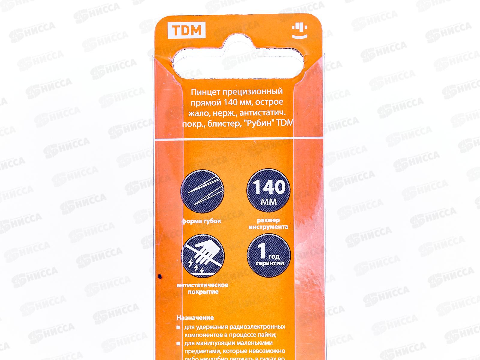 Пинцет TDM прецизионный прямой 140 мм, острое жало, Рубин SQ1025-0805 имеет небольшие размеры и острые губки, что позволяет работать с мелкими деталями. Удобно держать в руках - противоскользящая поверхность. Специальное покрытие исключает появление статического заряда.