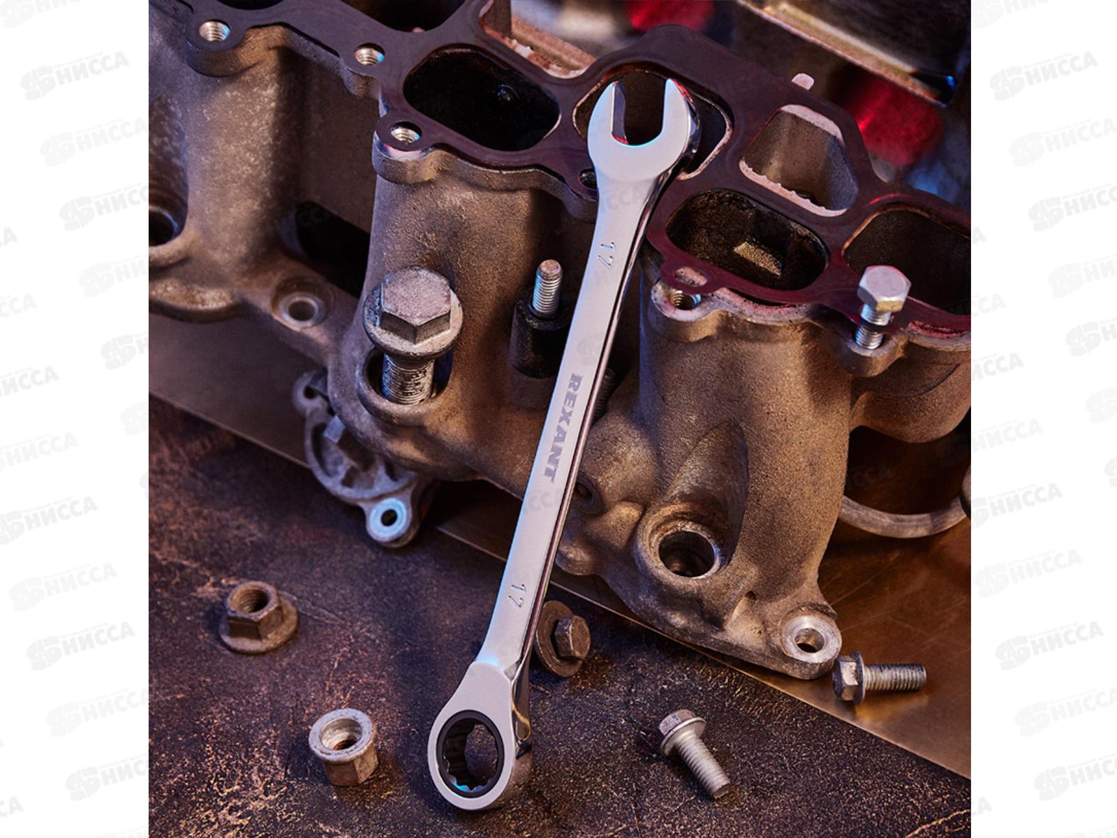 Ключ комбинированный трещоточный 17мм CrV, Rexant, зеркальный хром 12-5812-1