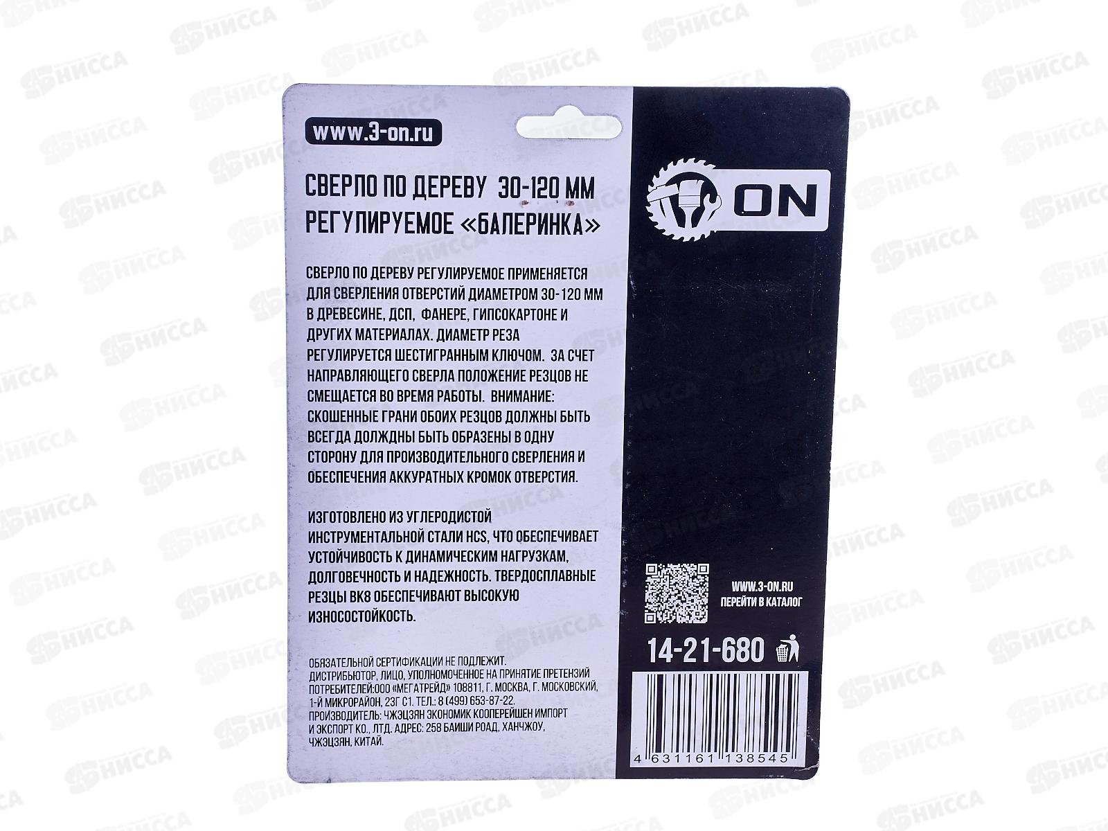 Сверло по дереву регулируемое "Балеринка", 30-120мм, ON