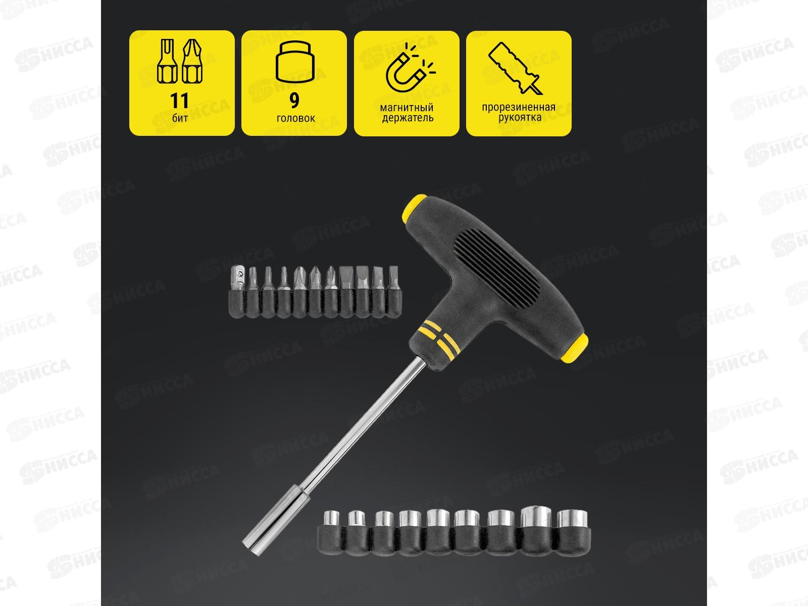 Отвертка с набором бит и головок Т-образная Kolner KSDS 1/11/9