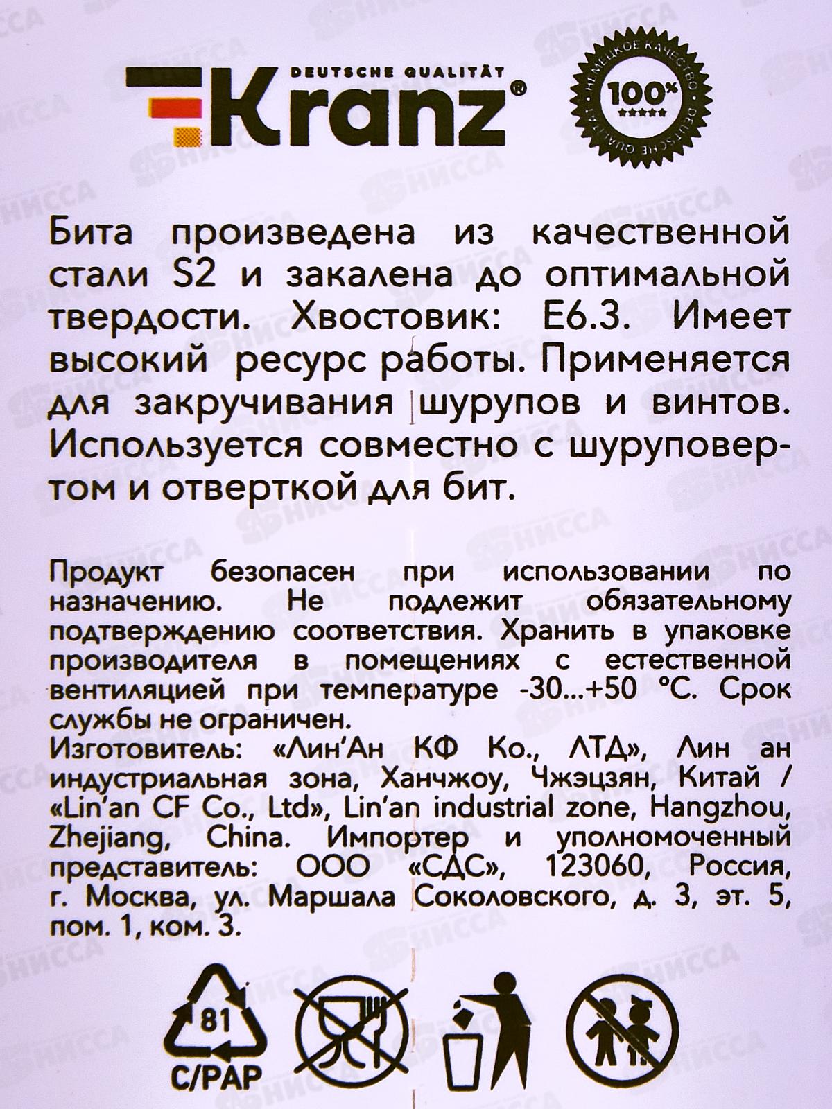 Бита Torx T-27*50мм для шуруповерта 2шт Kranz KR-92-0429-1