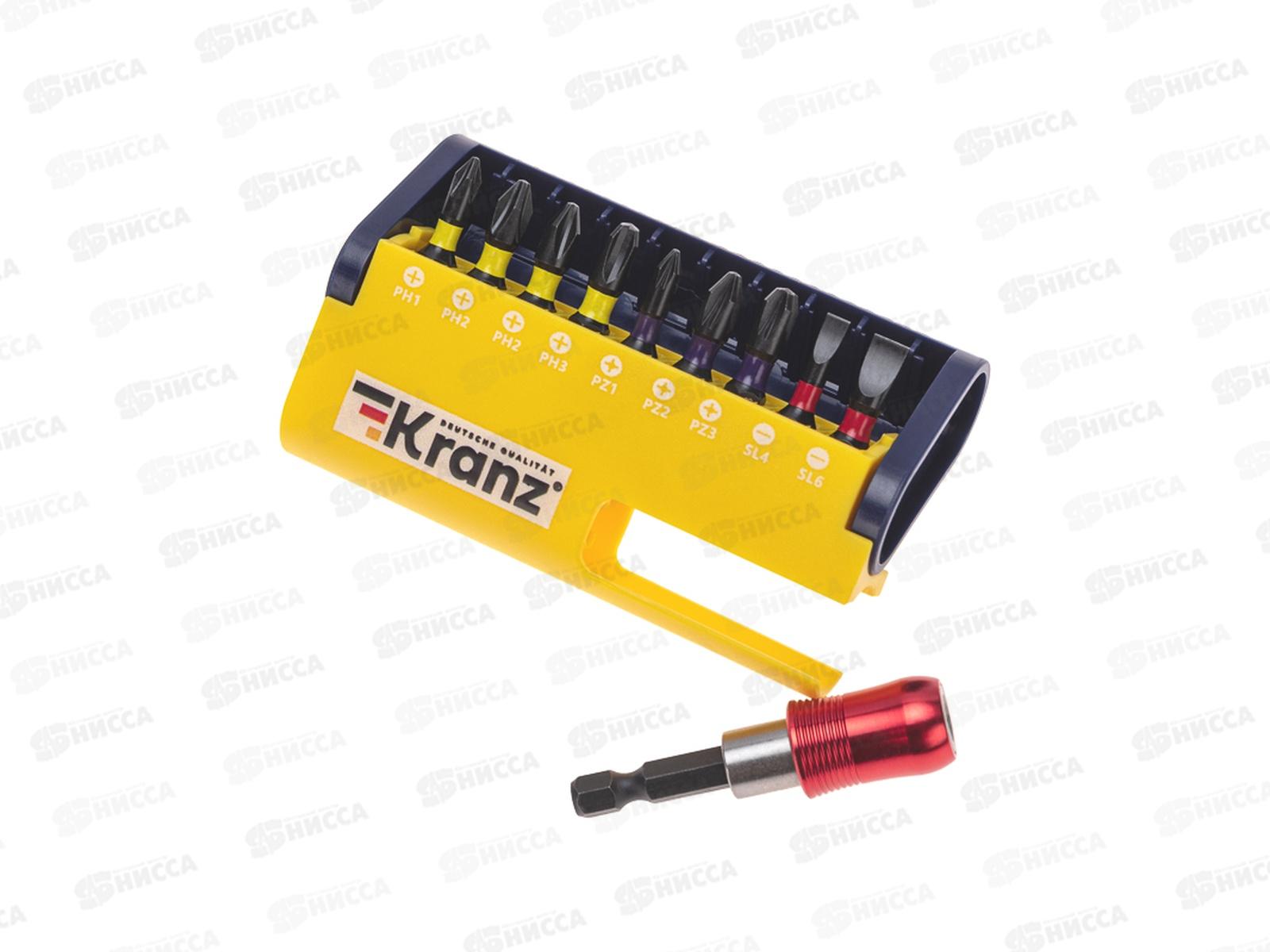 Набор бит с магнитным держателем, пластиковый кейс, 10 шт KRANZ, KR-92-0466