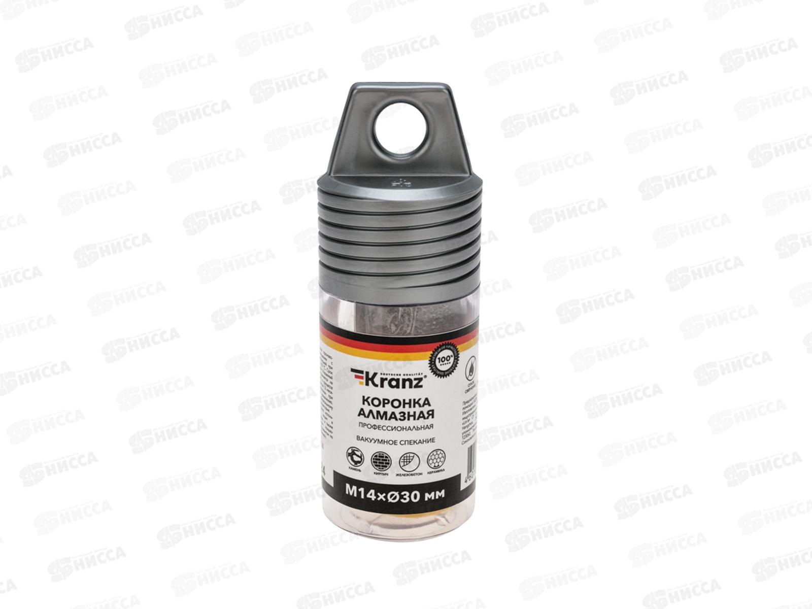 Коронка алмазная профессиональная по керамограниту и железобетону М14, вакуумное спекание, 30мм, для УШМ KRANZ, KR-92-1014