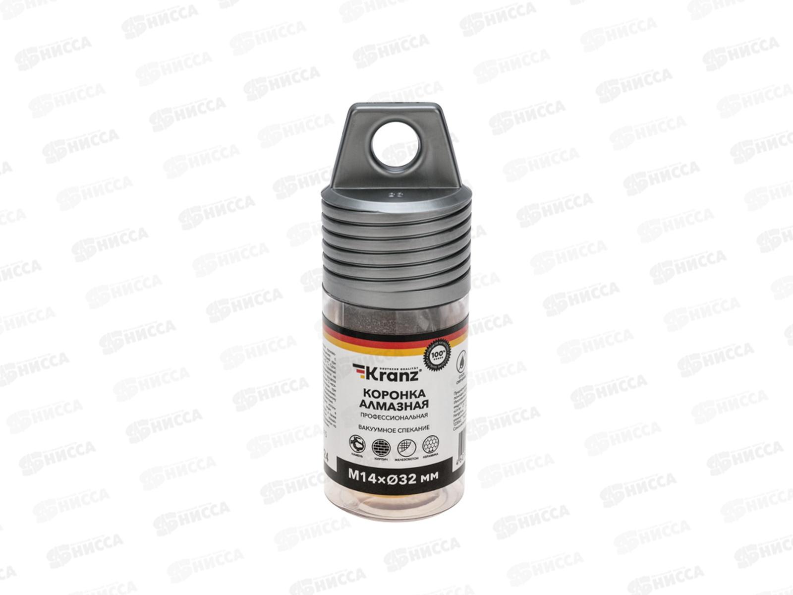 Коронка алмазная профессиональная по керамограниту и железобетону М14, вакуумное спекание, 32мм, для УШМ KRANZ, KR-92-1015