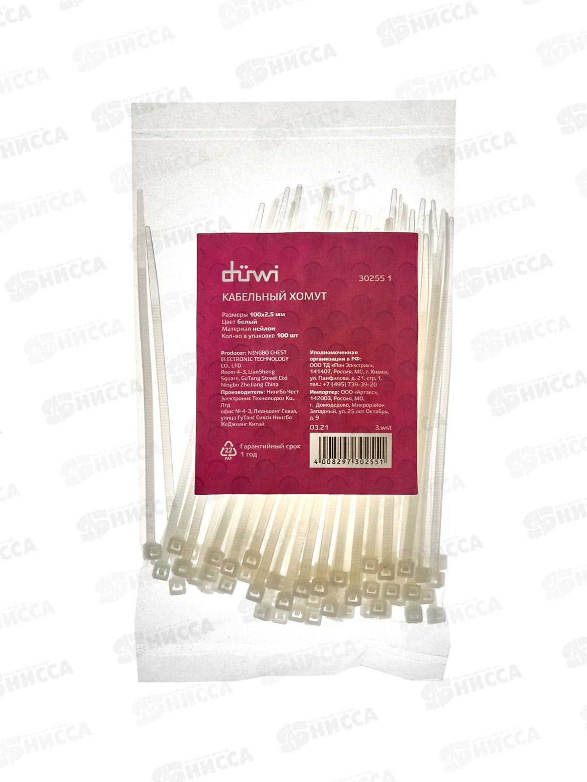 Хомут кабельный нейлоновый Diwi 100*2,5мм 100шт белый 30255