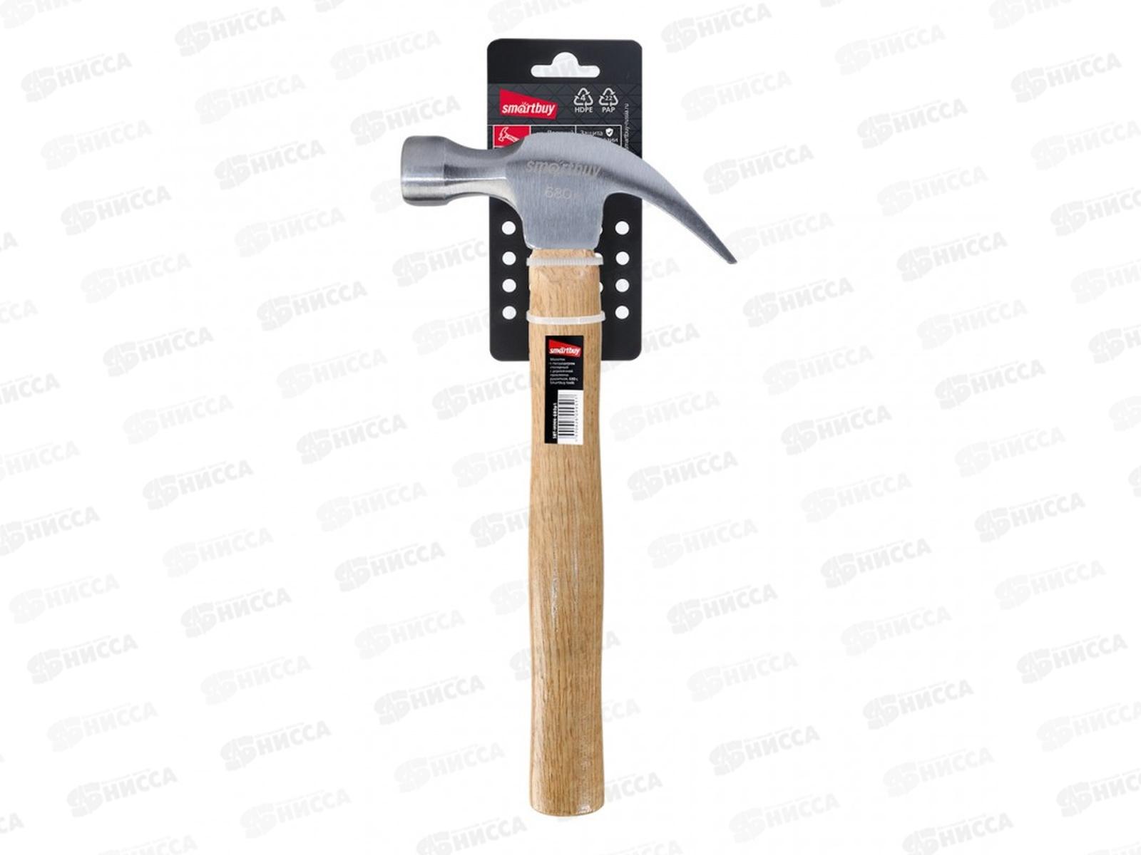 Молоток с гвоздодером 680г столярный с деревянной проклеенной рукояткой, 680г, Smartbuy tools
