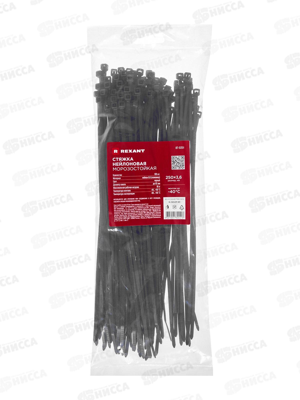 Стяжка нейлоновая морозостойкая 250*3,6мм, черная 100шт, REXANT, 87-0251