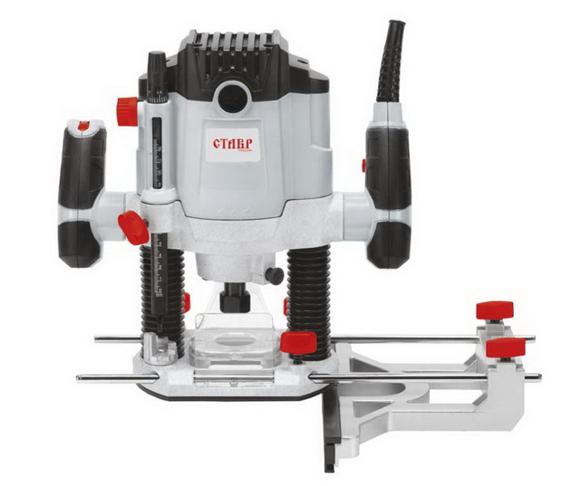 Фрезерная машина СТАВР МФ-12/1800. Благодаря прочной конструкции и использованию элементов из металла,позволяющих использовать инструмент в самых жестких условиях эксплуатации на производственных и строительных объектах (мод. МФ-12/1800). Линейка на корпусе фрезерной машины позволяет определить точную глубину фрезерования. Электронный регулятор скорости служит для выставления оптимальной скорости фрезерования в зависимости от материала. Защитный экран обеспечивает безопасную и комфортную работу оператора. Фрезерная машина поставляется с параллельным упором для более удобного и точного ведения инструмента по обрабатываемой поверхности. Для чистоты обработки фрезер имеет возможность подключения к пылесосу. Комплектация: Параллельный упор (2 направляющие, упор, метчик ), фреза, ключ для цангового патрона, дополнительные цанги (6 мм, 8мм), копировальная втулка, ролик параллельного упора, линейка параллельного упора.