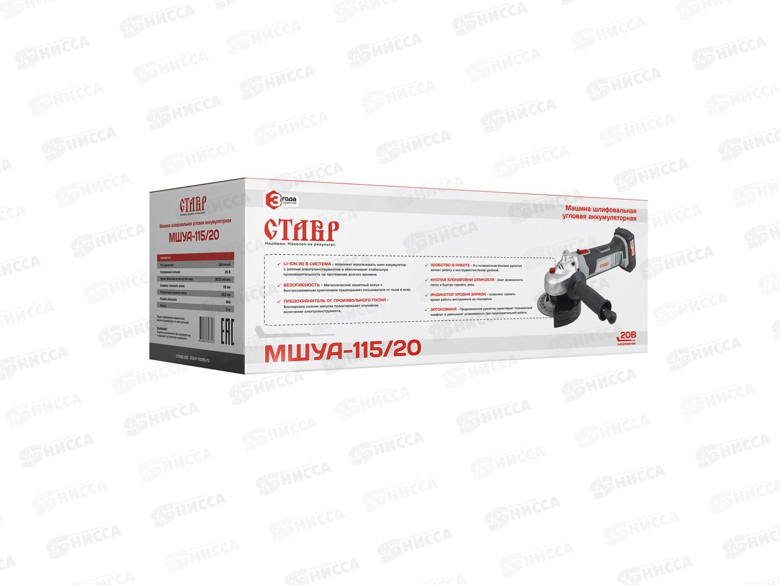 Машина шлифовальная угловая аккумуляторная 20 Вольт, число оборотов 8000об/м, без АКБ и зарядного (приобретается отдельно), диск 115мм, Ставр МШУА-115/20 *4
