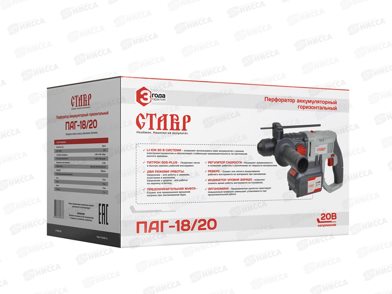 Перфоратор аккумуляторный горизонтальный 20В, число оборотов 0-300/ 0-1000, 0-4300 ударов/мин., продается без аккумулятора и зарядного, Ставр ПАГ18/20 *4