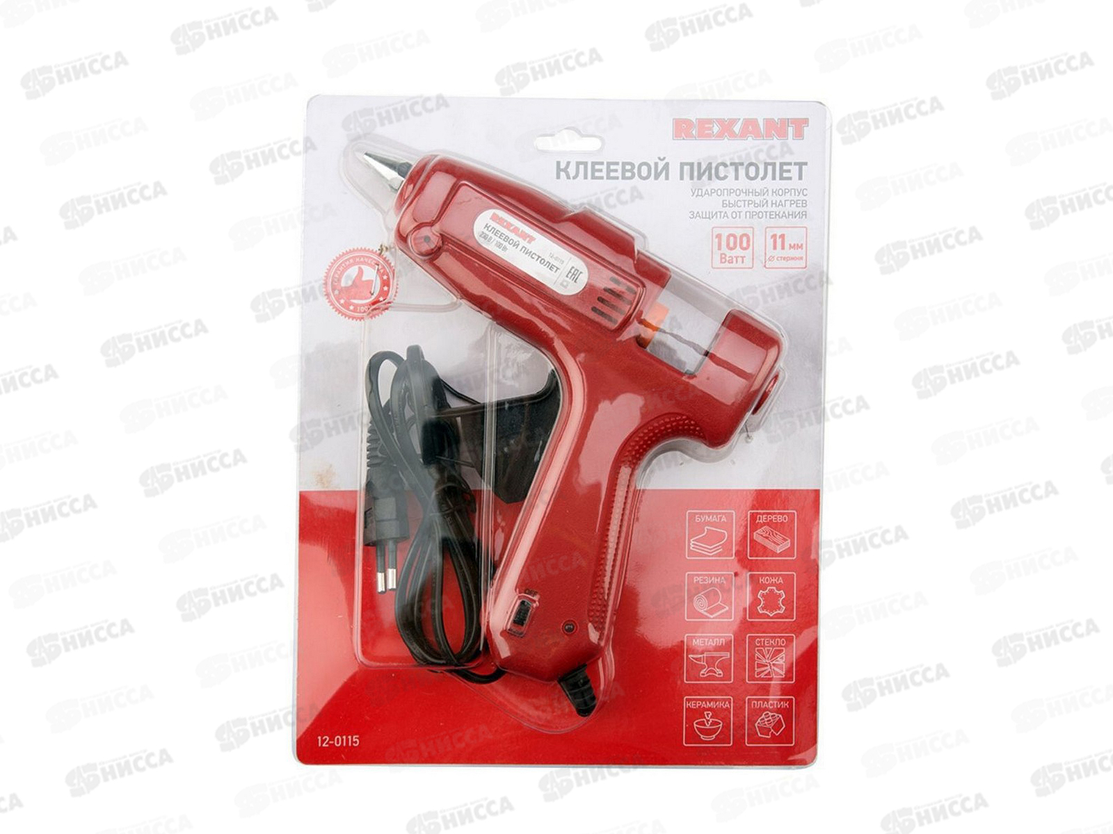 Пистолет клеевой 100Вт, 11мм, с кнопкой, REXANT блистер, 12-0115