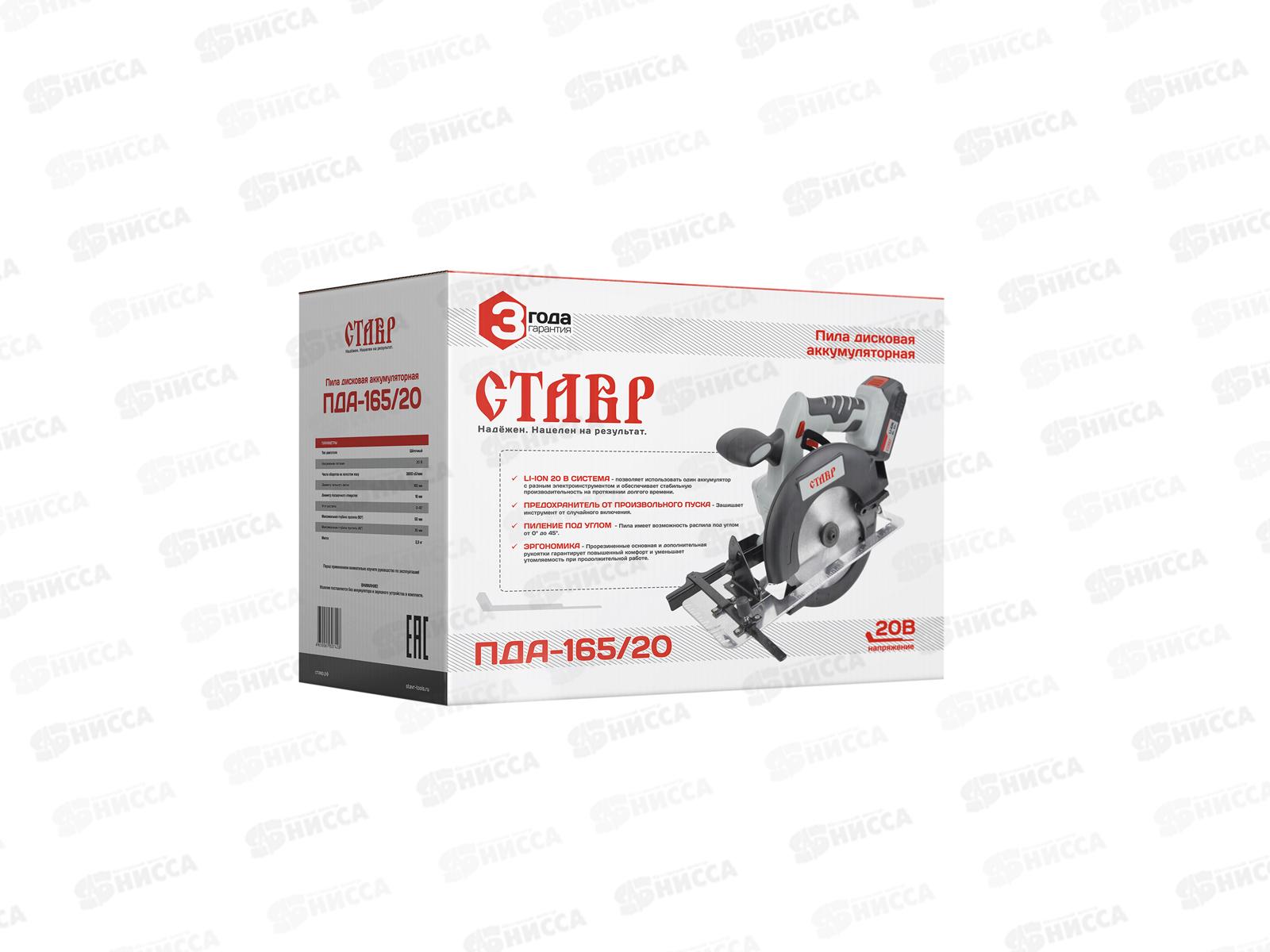 Пила дисковая аккумуляторная 20В, 3800об/мин, 165*16мм, продается без аккумулятора и зарядного, Ставр ПДА-165/20