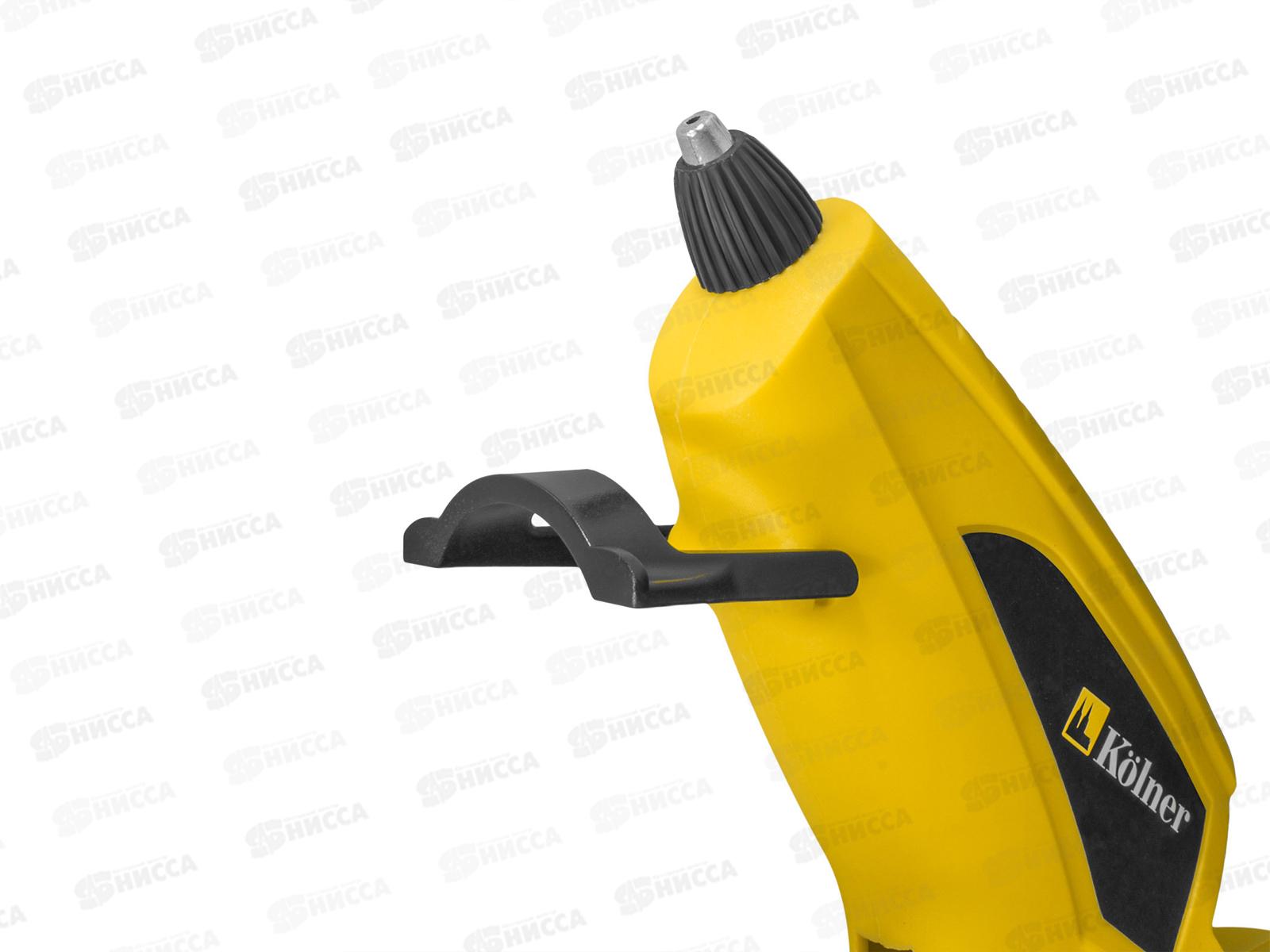 Клеевой пистолет KOLNER KGG 11/80. Потребление электроэнергии на уровне лампы накаливания. Во время пауз и длительных перерывов в работе прибор можно поставить на опору. Служит для быстрого склеивания твердых поверхностей, заполнения строительных швов и зазоров в труднодоступных местах. Комплектация: инструмент поставляется в блистере с двумя клеевыми стержнями.