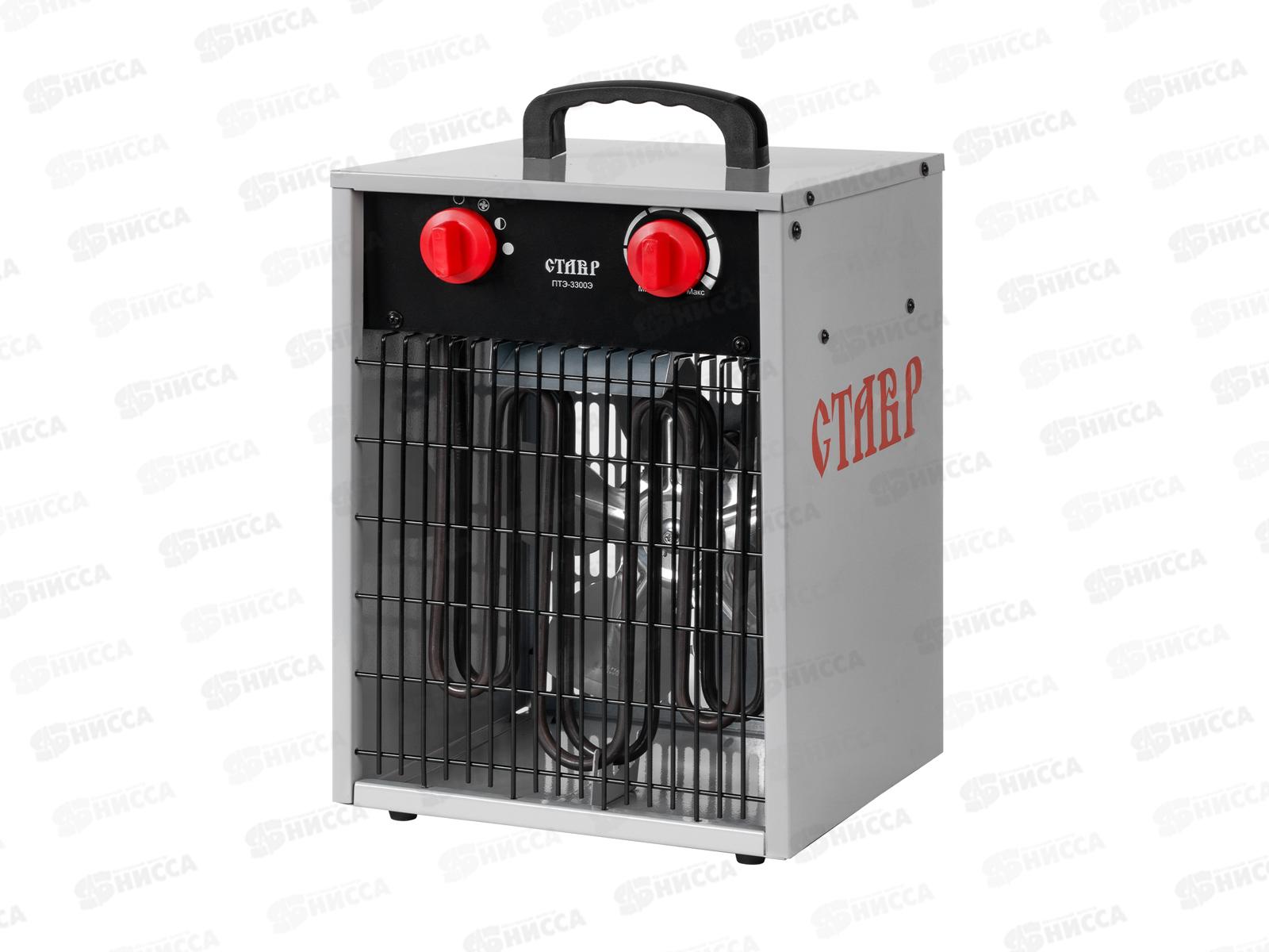 Тепловая пушка электрическая СТАВР ПТЭ-3300Э. Работает от бытовой электросети и применяется для обогрева не жилых общественных, вспомогательных и иных помещений (таких как гаражи, склады, строительные и производственные площади). Трубчатый электронагреватель - безопасный, крайне надежный и устойчивый к вибрациям и ударам нагревательный элемент. Мощный направленный поток горячего воздуха достигается благодаря новейшим технологиям и мощному электромотору. Два регулятора вентилятора и температуры на панели управления позволяют выставить оптимальный режим работы в зависимости от объема и желаемой температуры в помещении. Режим вентилятора позволяет использовать изделие не только для нагрева, но и для вентиляции помещения. За счет высокого КПД изделие быстро нагреет воздух в большом помещении. Нагревательный элемент изготовлен из качественных первичных материалов, а корпус выполнен из стали с антикоррозионным покрытием. Контроль процесса нагрева осуществляется с помощью высококачественного термостата и отдельного датчика температуры, что исключает перегрев и выход изделия из строя. Для подключения, эксплуатации и обслуживания изделия не требуются специальные навыки.