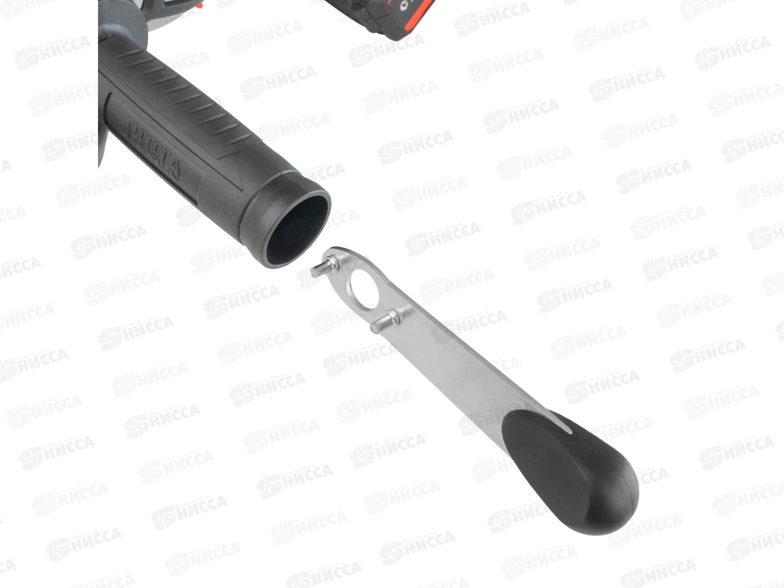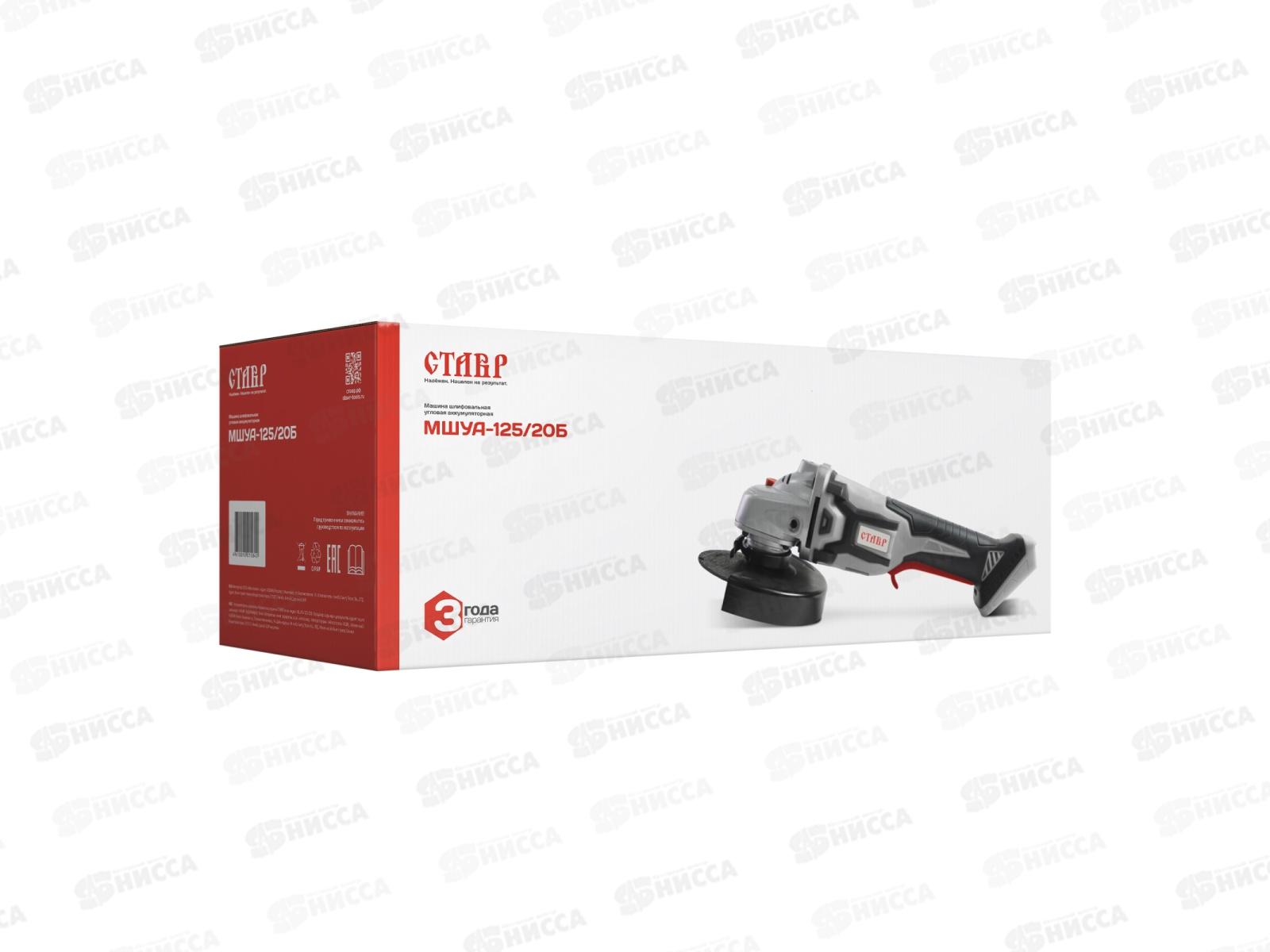 Машина шлифовальная угловая аккумуляторная СТАВР МШУА-125/20Б. Единая платформа 20 В LI-ION, позволяет использовать один аккумулятор с разным электроинструментом и обеспечивает стабильную производительность на протяжении долгого времени. Бесщеточный двигатель BRUSHLESS обладает высоким КПД и крутящим моментом, низким энергопотреблением, а также повышенной надежностью и сроком службы. Изделие предназначено для работы с отрезными и шлифовальными дисками по металлу, 125 мм. Специальная конструкция выключателя предотвращает случайное включение электроинструмента. 3-х позиционная боковая рукоятка с креплением для ключа фланца внутри делает работу с инструментом более удобной. Металлический защитный кожух с быстрозажимным креплением предохраняет пользователя от пыли и искр. Прорезиненная рукоятка гарантирует повышенный комфорт и уменьшает утомляемость при продолжительной работе. Кнопка блокировки шпинделя дает возможность легко и быстро сменить диск. (ТОВАР ПРОДАЕТСЯ БЕЗ АККУМУЛЯТОРА И ЗАРЯДНОГО УСТРОЙСТВА)