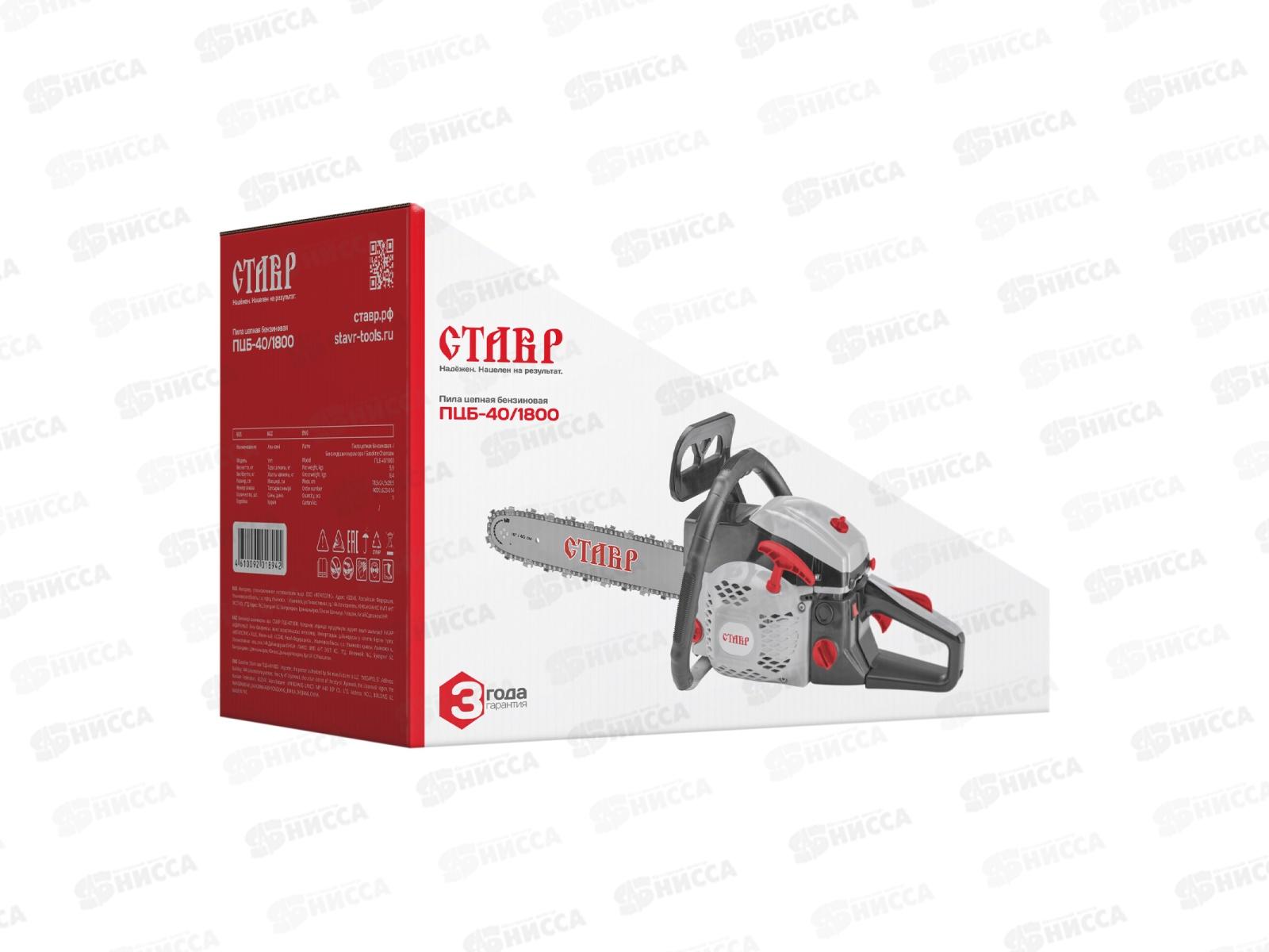 Пила цепная бензиновая 1,8 кВт/2,3л.с шина Ставр ПЦБ-40/1800 *4