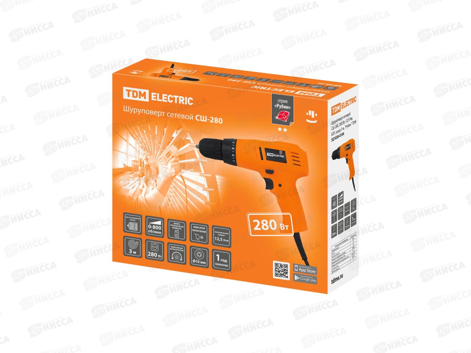 Шуруповерт сетевой СШ-280 280ВТ 12,5Нм БЗП шнур 3м Рубин 0104 TDM