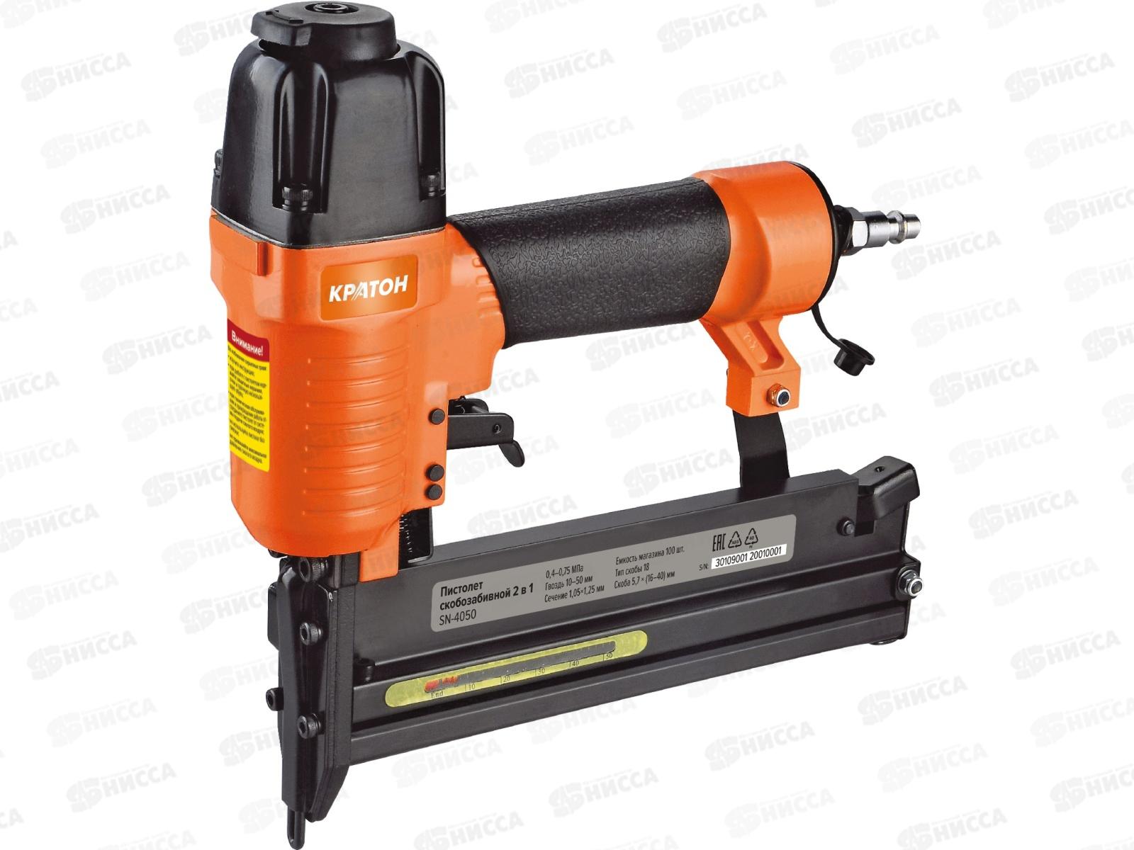 Пистолет скобозабивной КРАТОН 2в1 ASN-4050, гвоздь 15-50мм, скоба 16мм