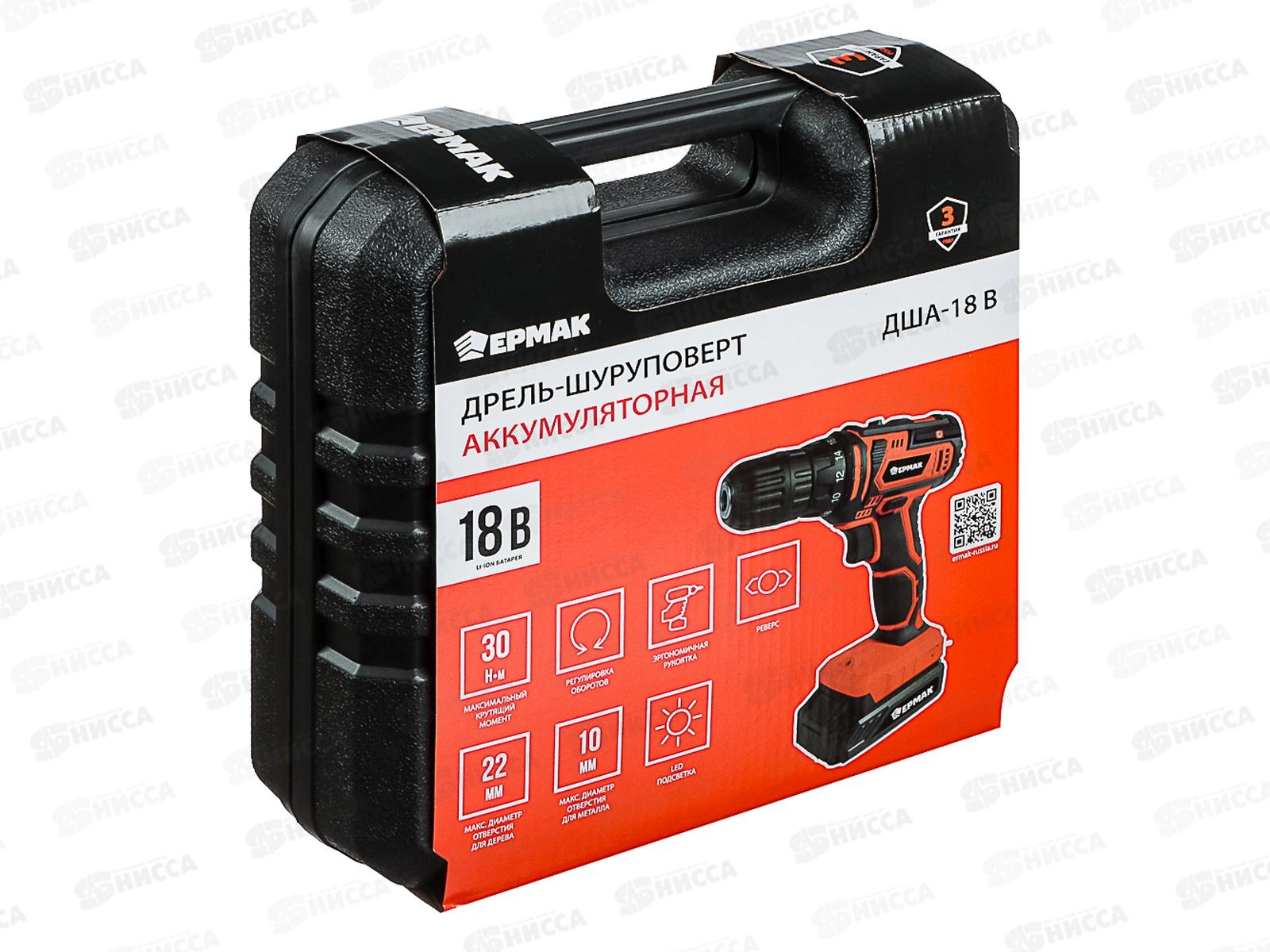 Аккумуляторная дрель-шуруповерт ЕРМАК ДША-18 646-325 предназначена как для профессионального использования, так и в быту.