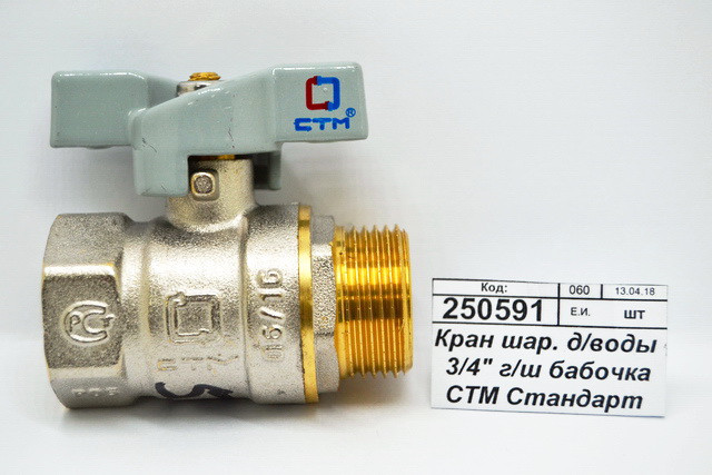 Кран шаровый для воды 3/4" гайка-штуцер бабочка СТМ Стандарт *15/120