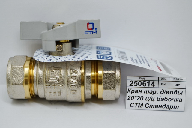 Кран шаровый для воды 20*20 цанга/цанга, бабочка СТМ Стандарт *15