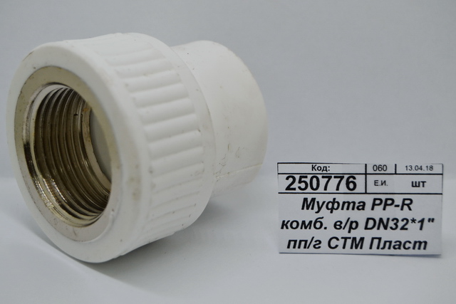 Муфта PP-R комбинированная внутренняя резьба DN32*1" полипропиленовая/гайка СТМ Пластмассовая *10/100