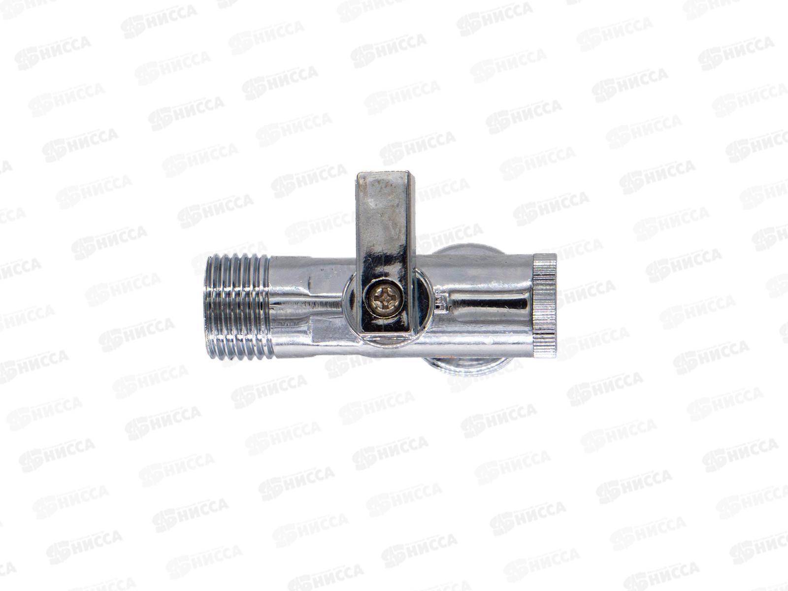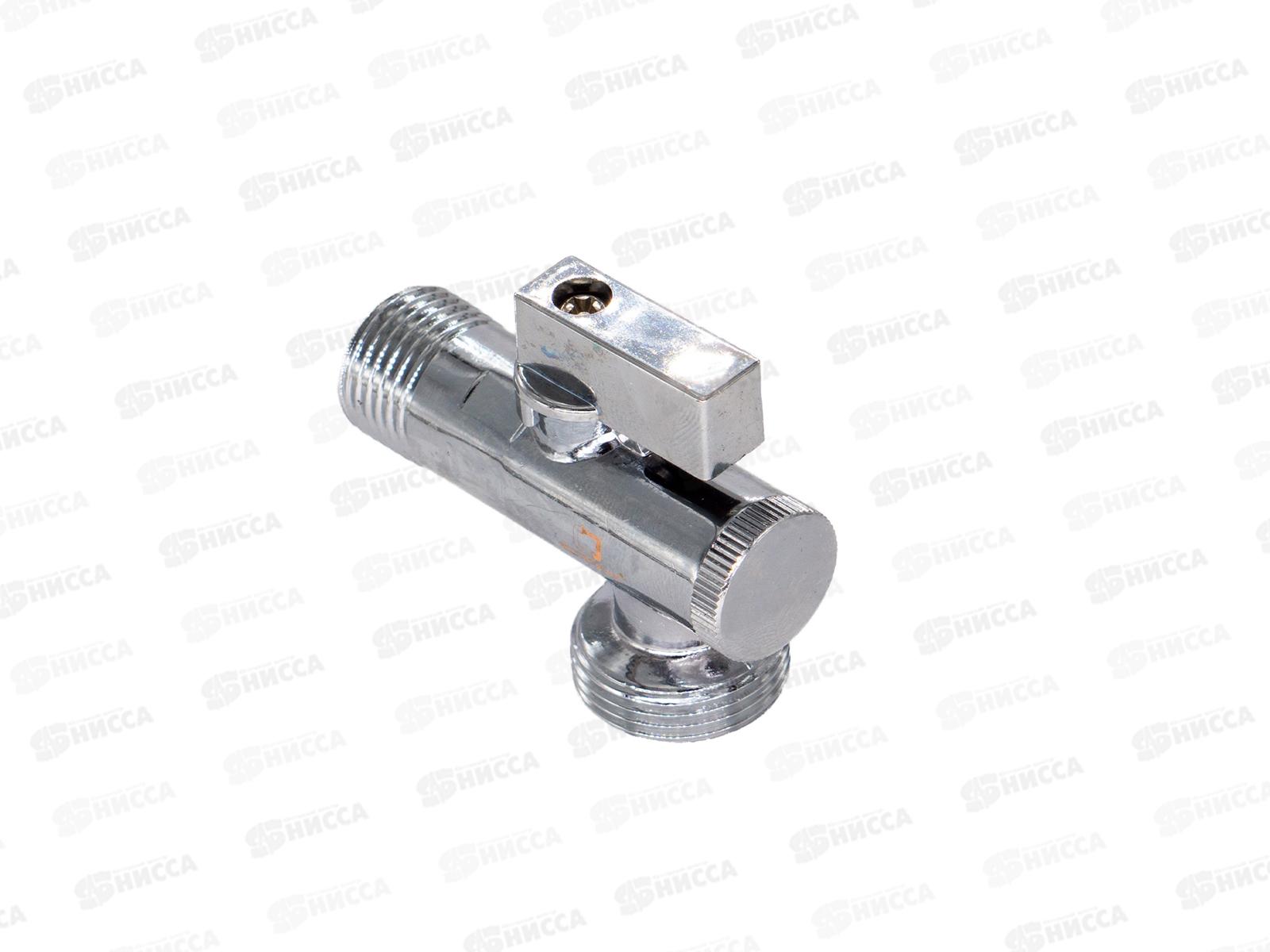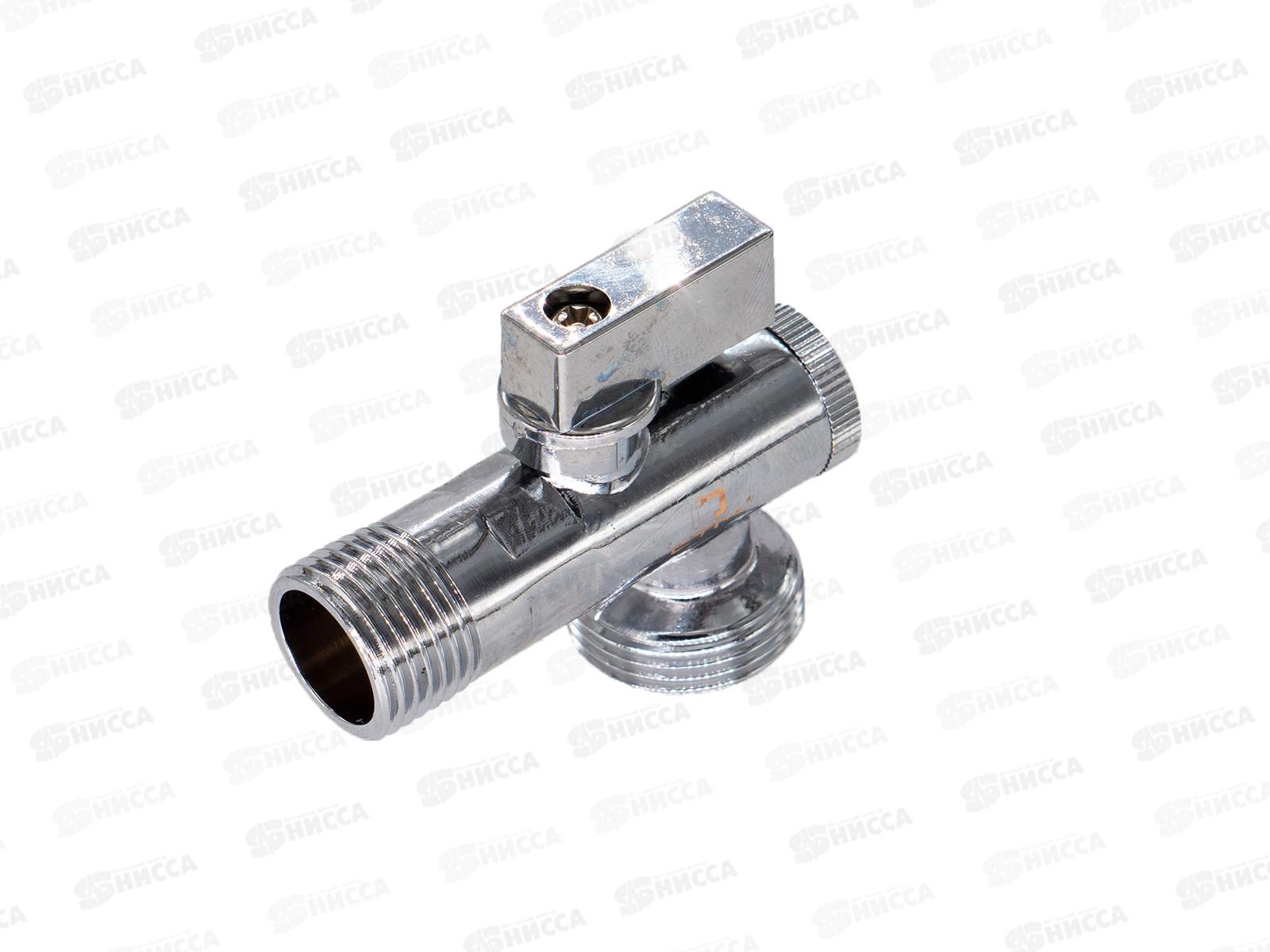 Кран шаровый для бытовых приборов угловой 1/2"*1/2" штуцер /штуцер с фильтром и отражат. бабочка, хром