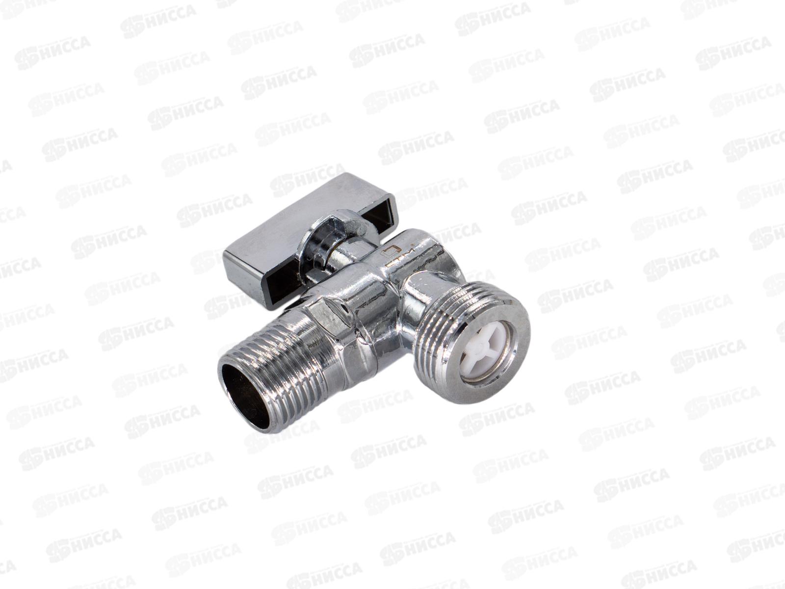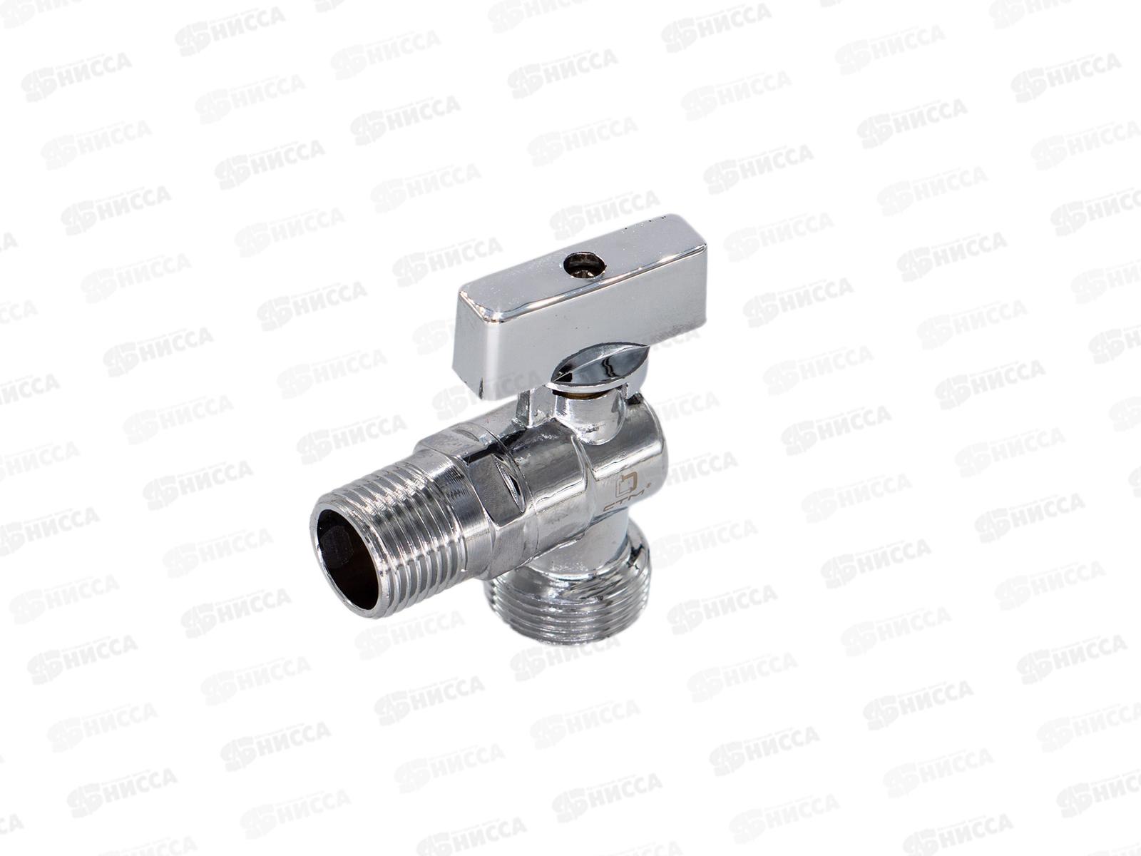 Кран шаровый для бытовых приборов угловой 1/2"*3/4" штуцер/штуцер с обратным клапаном и отражат., бабочка, хром СТМ