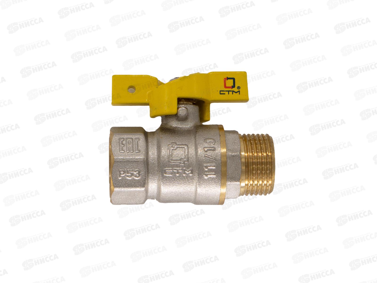 Кран шаровый для газа 1/2" гайка/штуцер бабочка СТМ ГАЗ