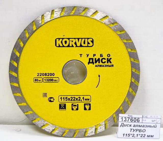 Диск алмазный применяется для высокопроизводительного и точного пиления с водяным или воздушным охлаждением (без сколов и трещин) бетона, природного и искусственного камня, огнеупорного кирпича, мрамора, гранита и иных строительных материалов. Отвод тепла происходит за счет специального профиля режущей кромки диска, выполненной в виде турбины.