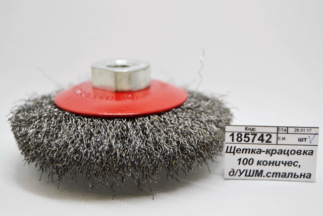 Щетка-крацовка 100 коническая для Угловой Шлифовальной Машины, стальная. витая проволка.2302031