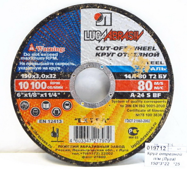 Круг отрезной по металлу (Луга) 150*3*22 *25