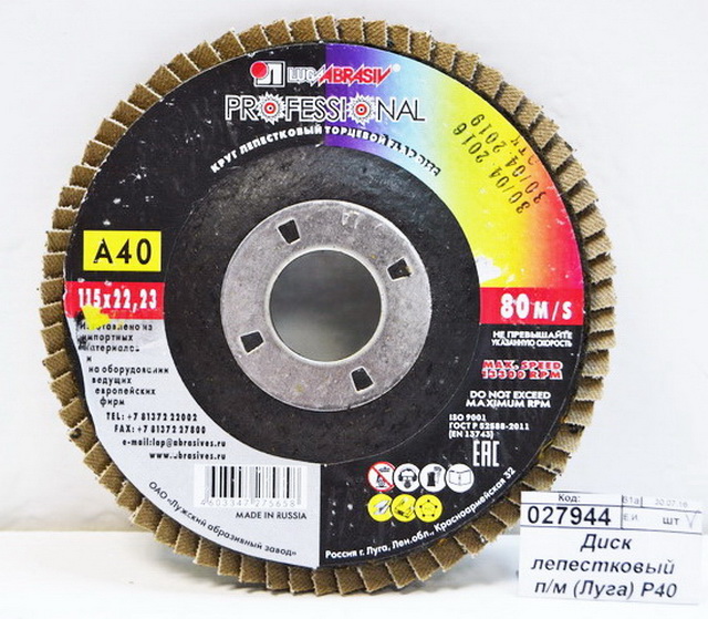 • Диск лепестковый  по металлу (Луга) Р40 115*22 *5/80