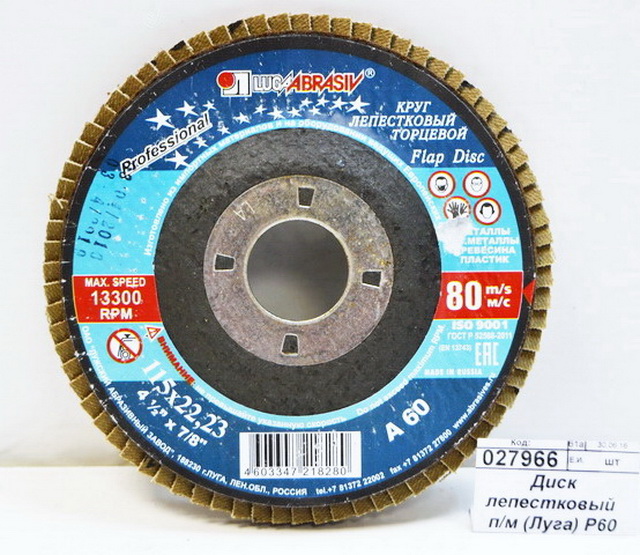 Диск лепестковый по металлу (Луга) Р60 115*22 *5/80