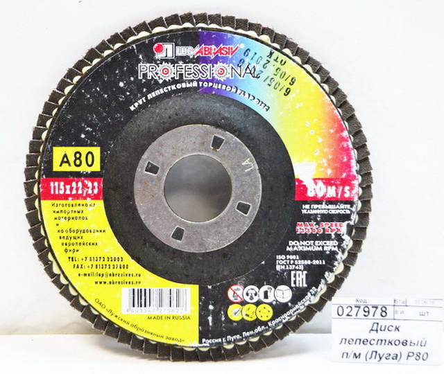 • Диск лепестковый  по металлу (Луга) Р80 115*22 *5/80