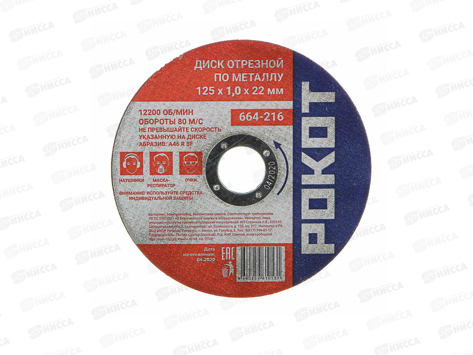 Диск отрезной по металлу РОКОТ 125*1,0*22мм 664-216 г