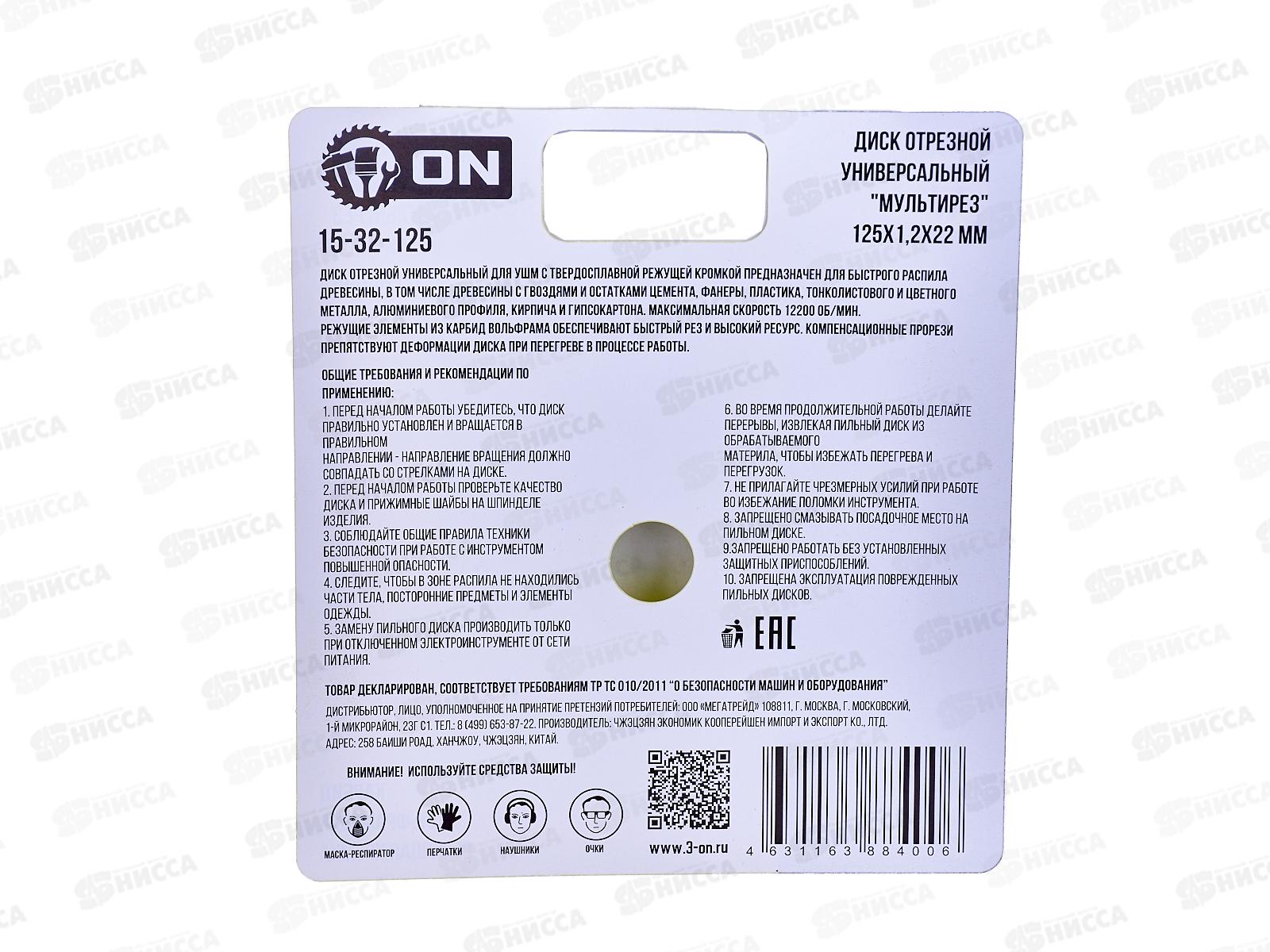 Диск отрезной универсальный "Мультирез" 125х1,2х22мм, ON (для УШМ)15-32-125