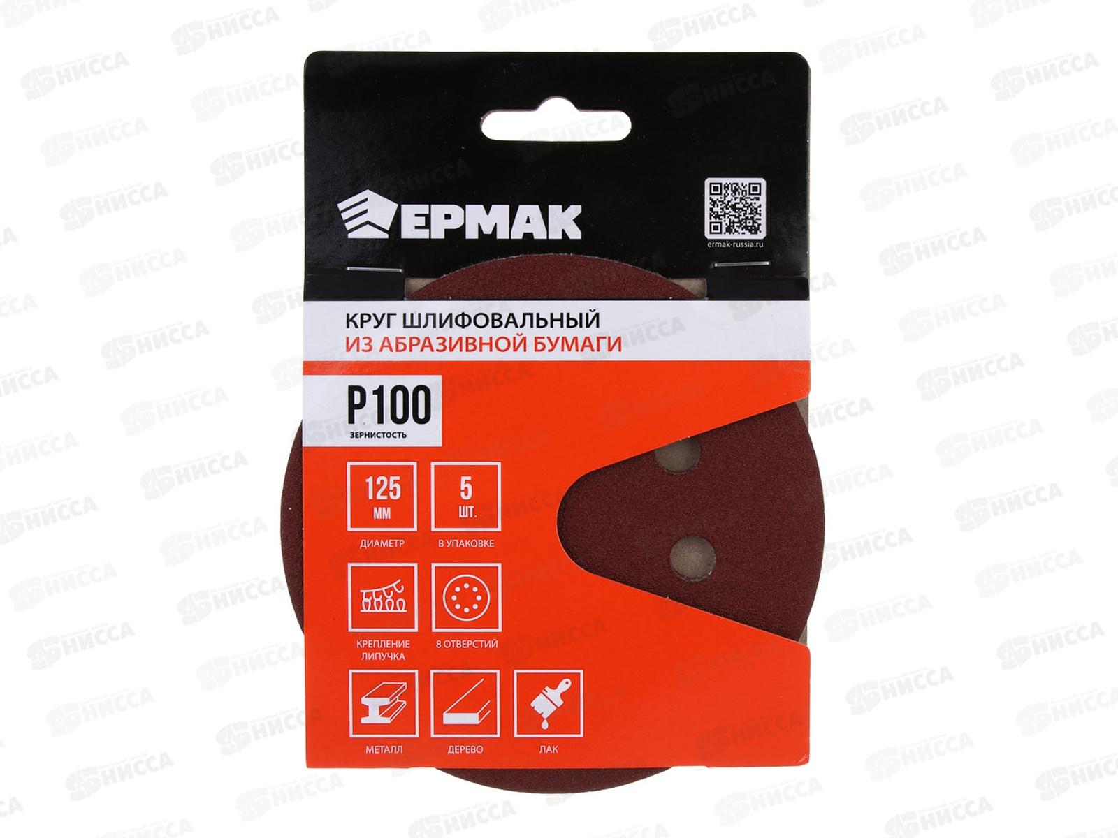 Круг шлифовальный из абразивной бумаги 8 отверстий Р100 125мм 5шт Ермак 608-004 г