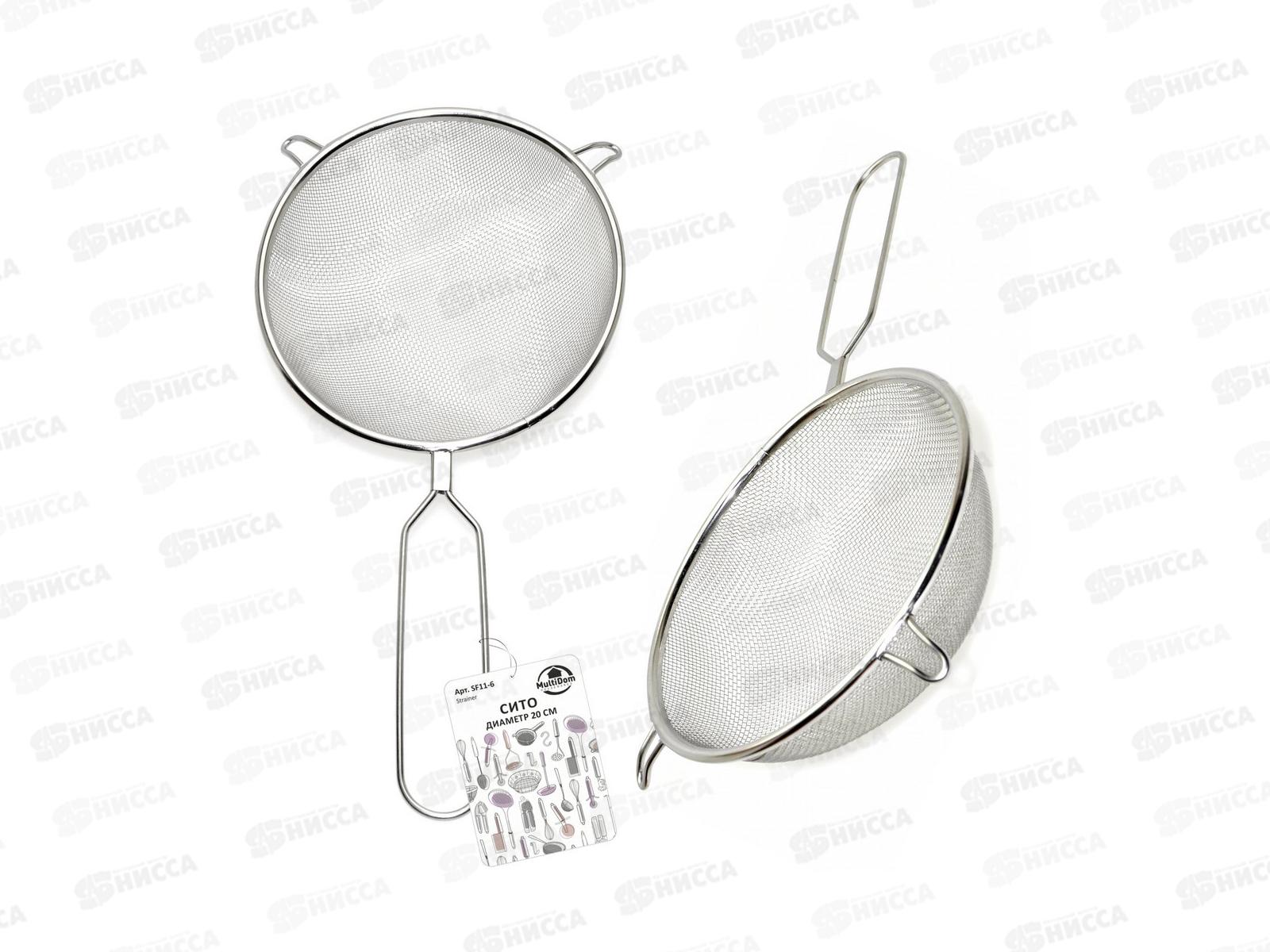 Большое сито диаметром 20 см используется для промывания фруктов, овощей, ягод, макарон и других продуктов. Также оно подходит для процеживания отваров трав, чая, морсов, компотов и т.п. Изделие изготовлено из нержавеющей стали, на ободке есть специальные «ушки» для фиксации на посуде и ручка. Ручка выполнена таким образом, что за нее можно повесить изделие на крючок. Нержавеющая сталь является гигиеничным материалом, который не ржавеет и не вступает в реакцию с продуктами питания.