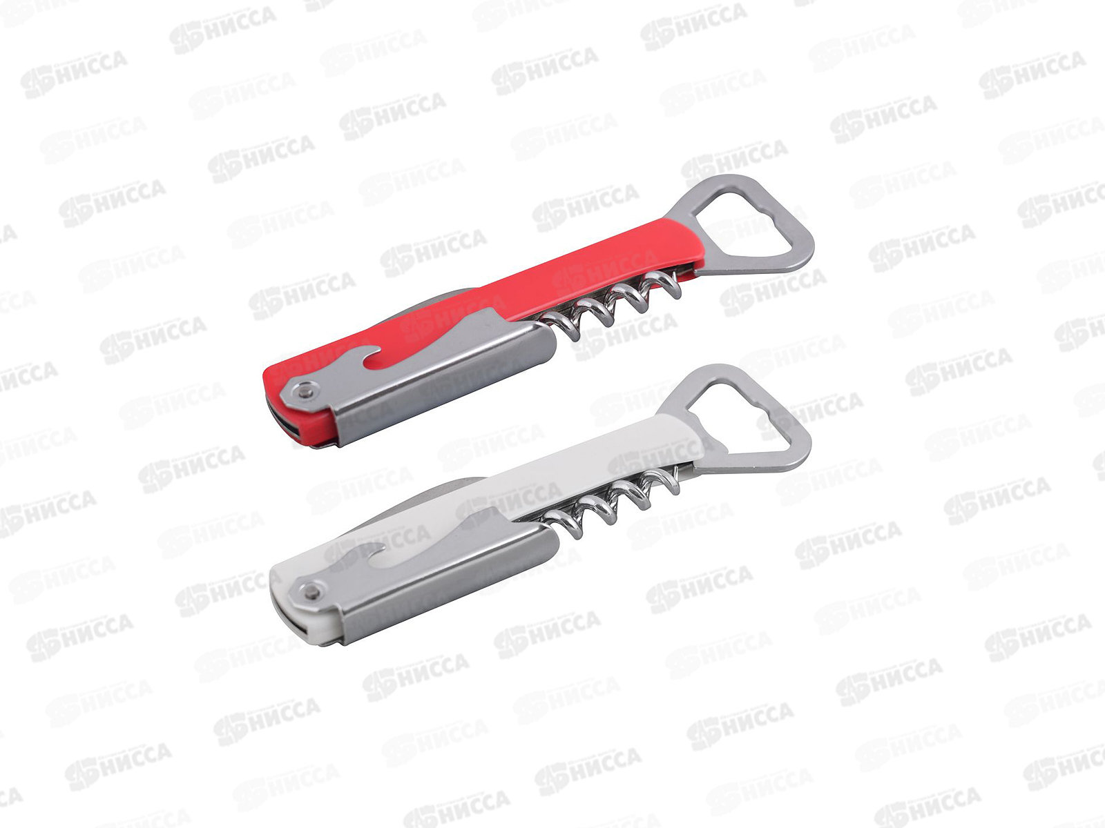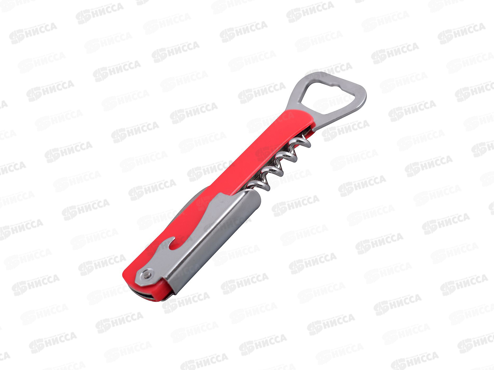 Многофункциональная открывалка выполняет целых 4 функции, изделие также известно под названием штопор «Сомелье». Конструкция ножа определяется способом его использования при открывании бутылки вина. В самом начале срезается капсула, для этого в конструкции присутствует маленький ножик для фольги. Затем нужно вставить спиральную часть в пробку, главное, чтобы она вошла ровно. После этого поставьте первую зазубрину на горлышко и потяните ручку так, чтобы пробка вышла примерно на треть. Если пробка извлекается плохо, следует опереть о горлышко вторую зазубрину. Приспособление имеет компактные размеры, его удобно использовать не только дома, но и брать с собой в поездку и на пикник. Изготовлено: рабочая часть из металла, накладки из пластмассы.