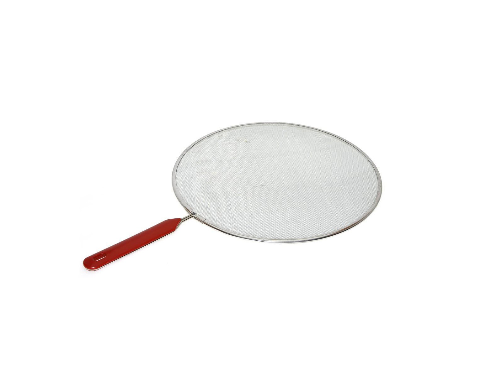 Эффективный защитный экран от брызг — плоское сито с ручкой. Защищает кожу рук и одежду от раскаленных брызг воды и масла во время жарки. Накрывайте сковороду во время жарки и тушения, сквозь мелкую сетку эффективно выпаривается жидкость, при этом крупные капли уже не способны пройти сквозь ячейки. Удобная ручка не нагревается и не плавится, что делает изделие максимально удобным в использовании. После применения тщательно промойте экран губкой с моющими средствами, чтобы удалить весь жир. Изготовлено из стали с хромированным покрытием, ручка из стали со вставкой из пластика.