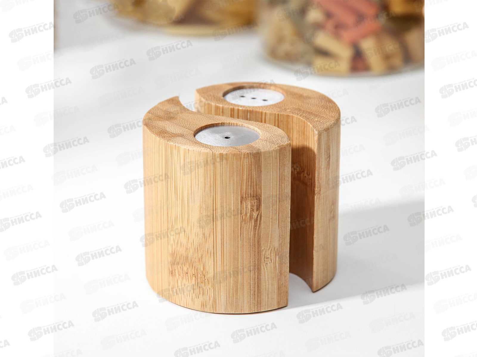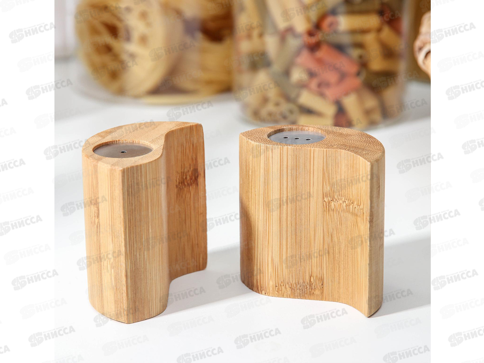Набор для специй 2 предмета (солонка+перечница) бамбук 7*7см №4 на магните